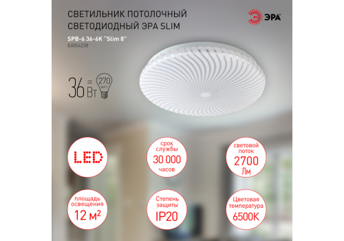Потолочный светильник Эра SPB-6 Slim 8 36-6K Б0054238