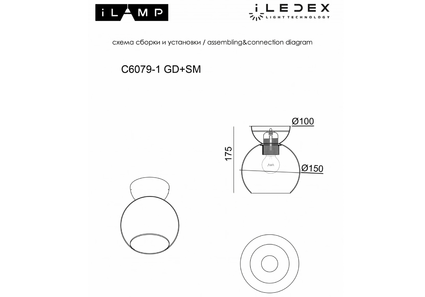 Потолочный светильник iLamp Mono C6079-1 BK+SM