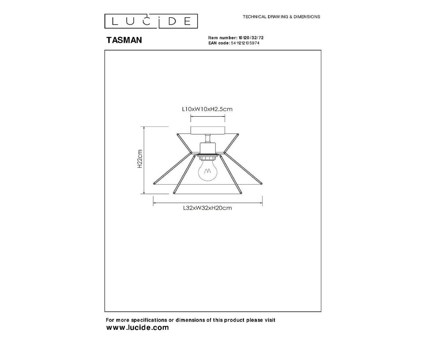Потолочный светильник Lucide Tasman 10120/32/72