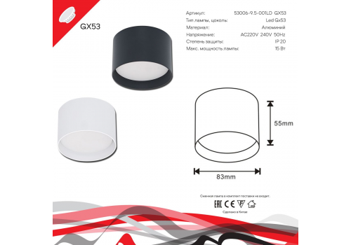 Потолочный светильник Reluce 53006-9.5-001LD GX53 WT