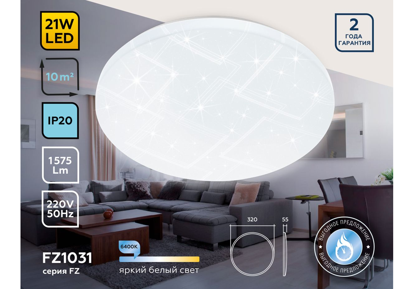Подходит для низких потолков: