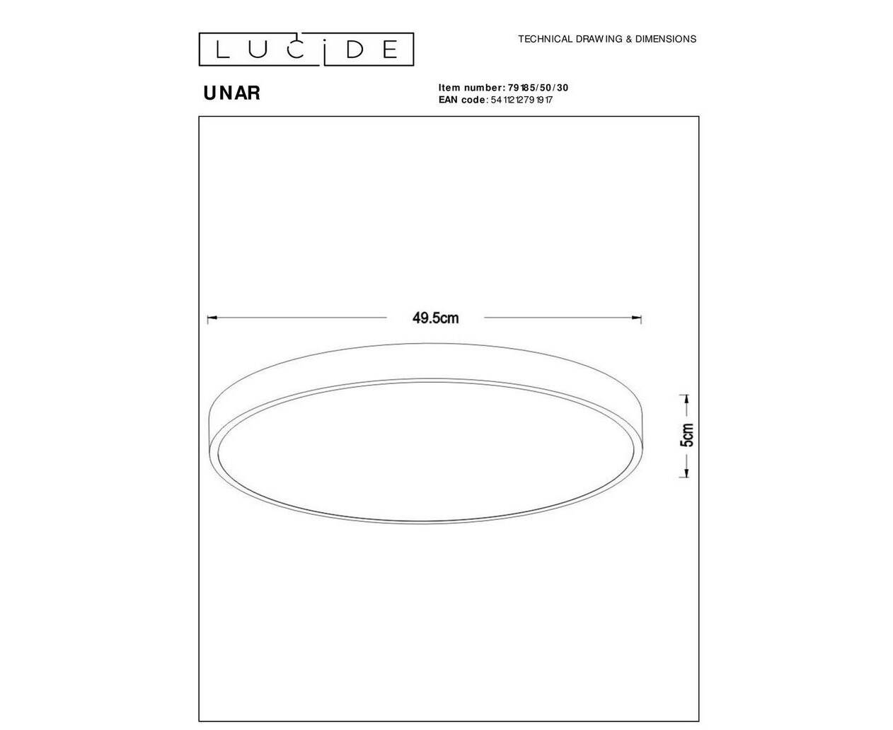 Потолочный светодиодный светильник Lucide Unar 79185/50/30