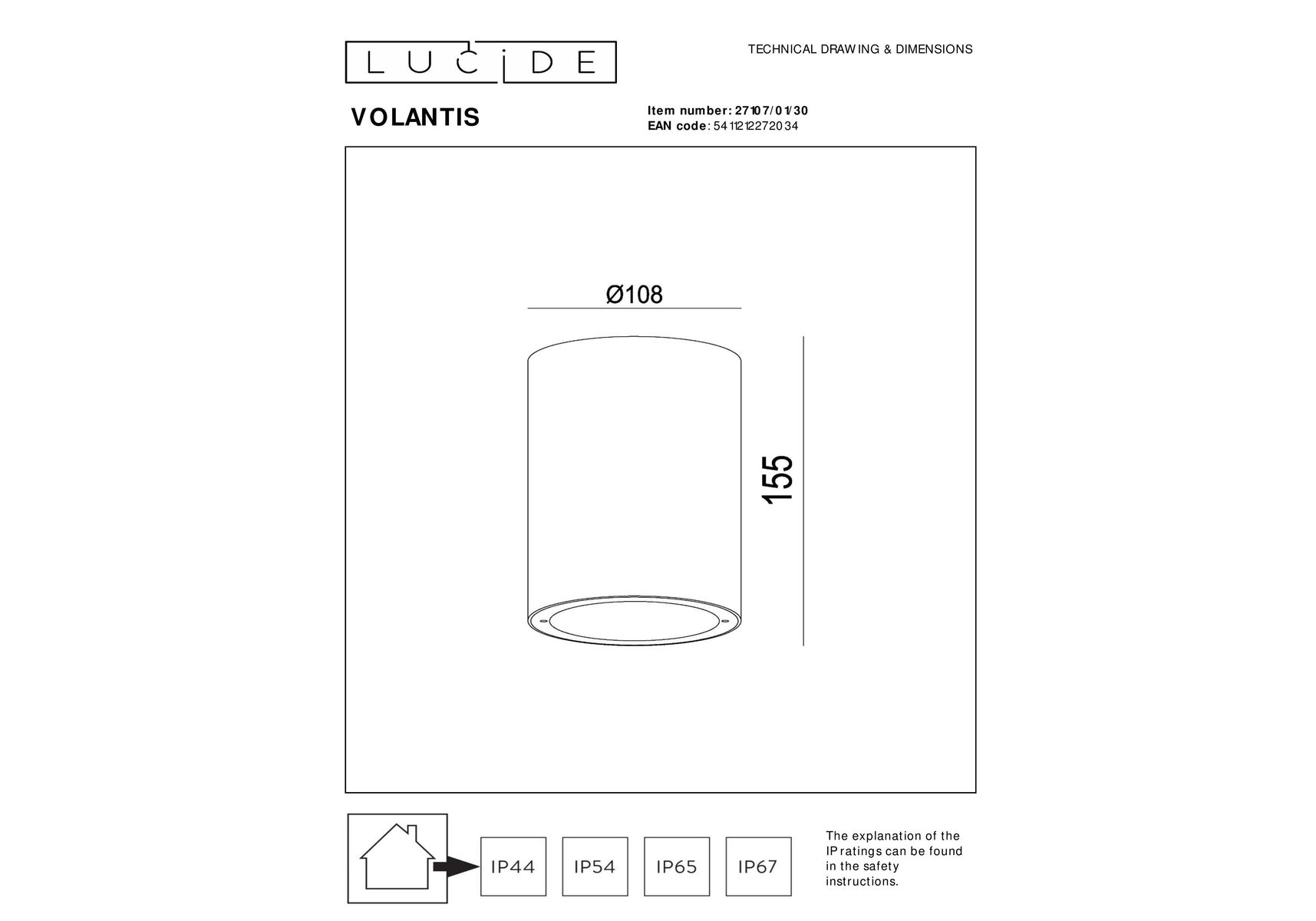 Уличный светильник Lucide Volantis 27107/01/30