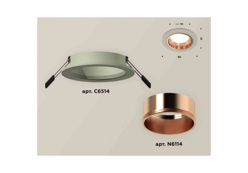 Комплект встраиваемого светильника Ambrella light Techno Spot XC6514005 SGR/PPG серый песок/золото розовое полированное (C6514, N6114)