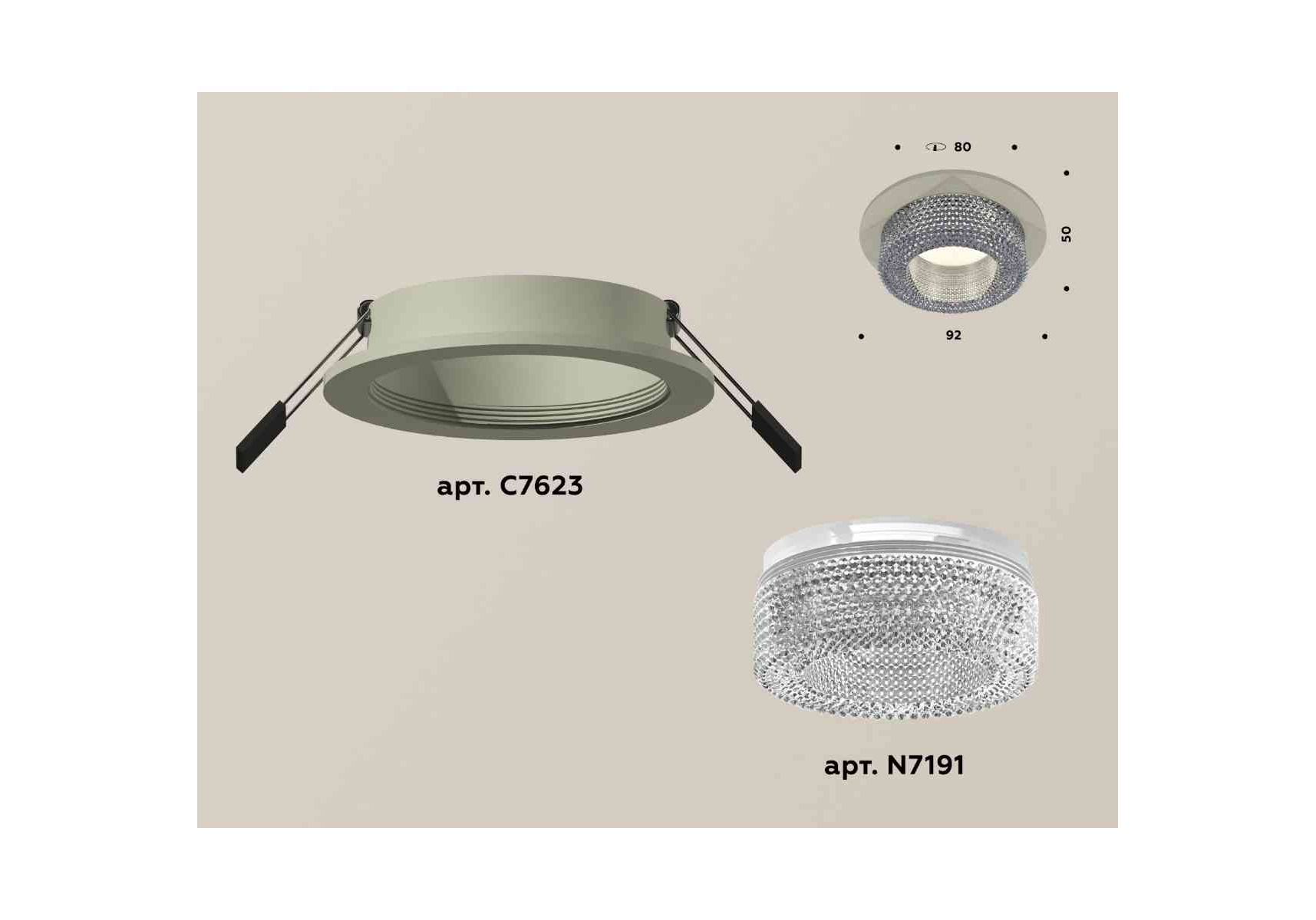 Комплект встраиваемого светильника Ambrella light Techno Spot XC7623020 SGR/CL серый песок/прозрачный (C7623, N7191)