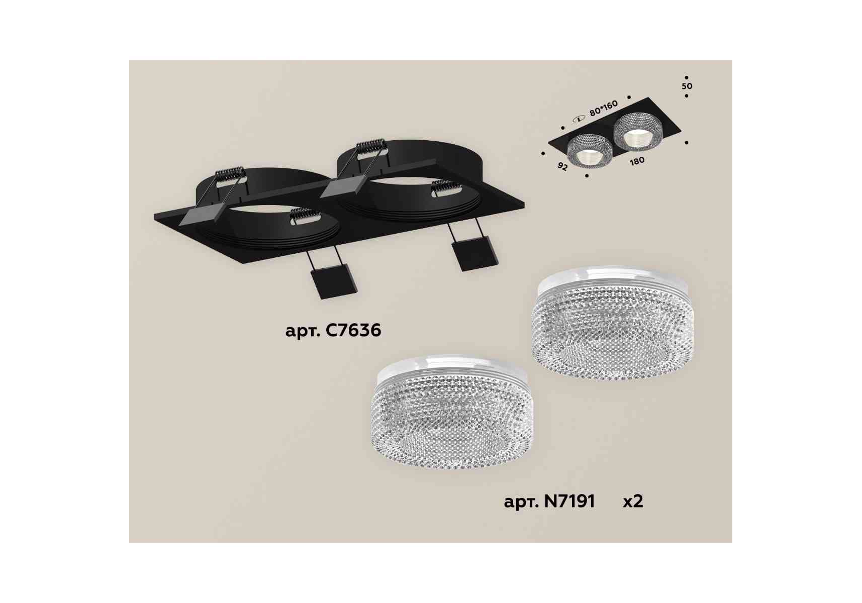 Комплект встраиваемого светильника Ambrella light Techno Spot XC7636020 SBK/CL черный песок/прозрачный (C7636, N7191)