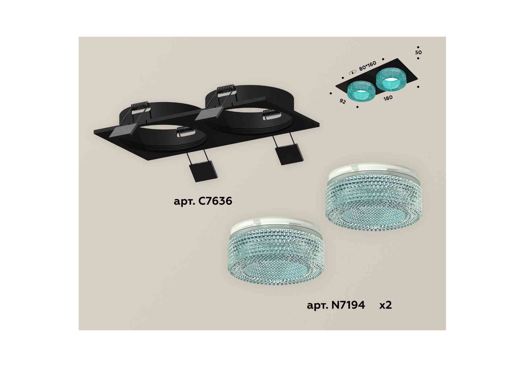 Комплект встраиваемого светильника Ambrella light Techno Spot XC7636023 SBK/BL черный песок/голубой (C7636, N7194)