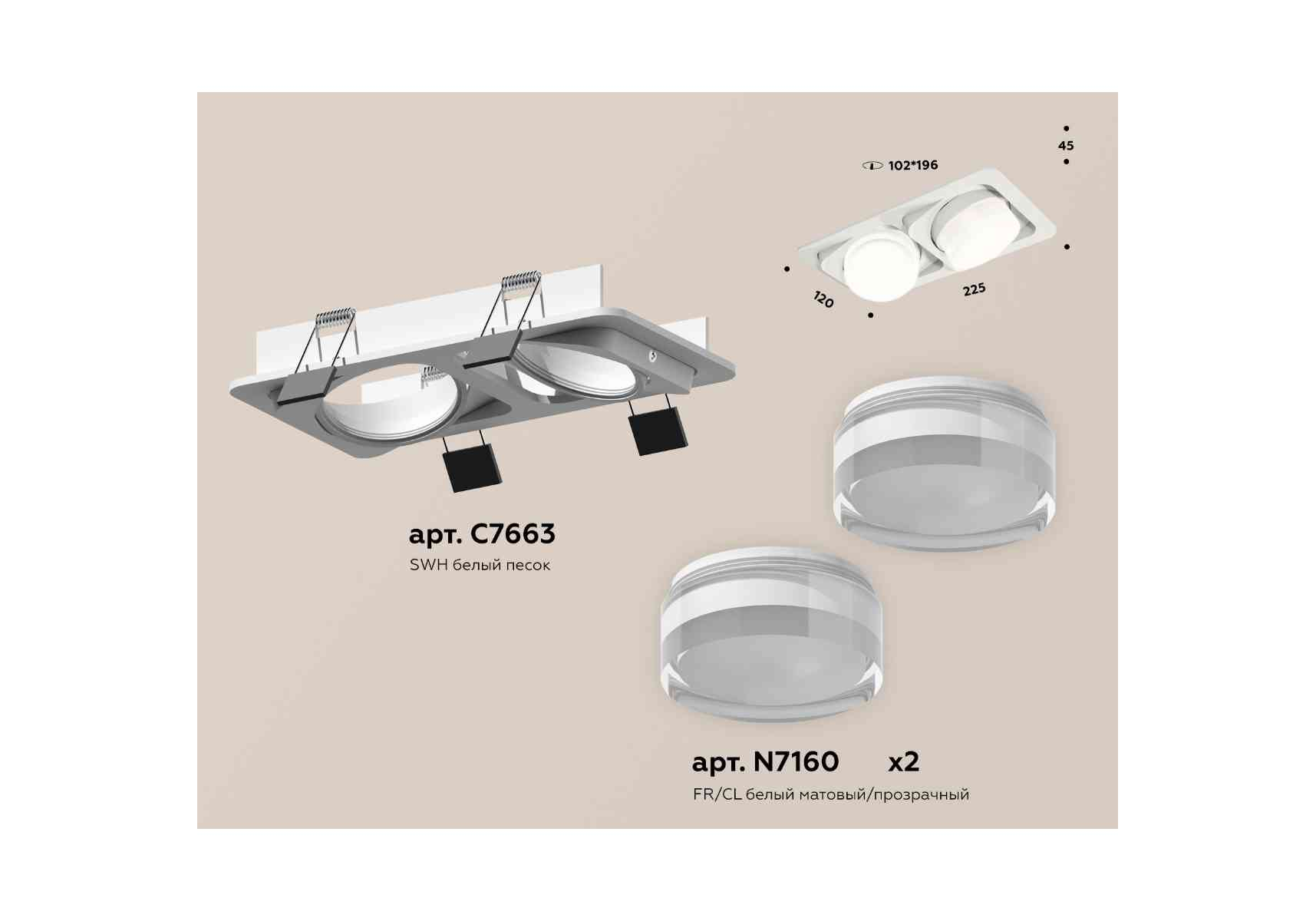 Комплект встраиваемого светильника Ambrella light Techno Spot XC7663083 SWH/FR/CL белый песок/белый матовый/прозрачный (C7663, N7160)