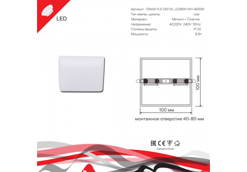70604-9.0-001OL LED8W WH 4000K
