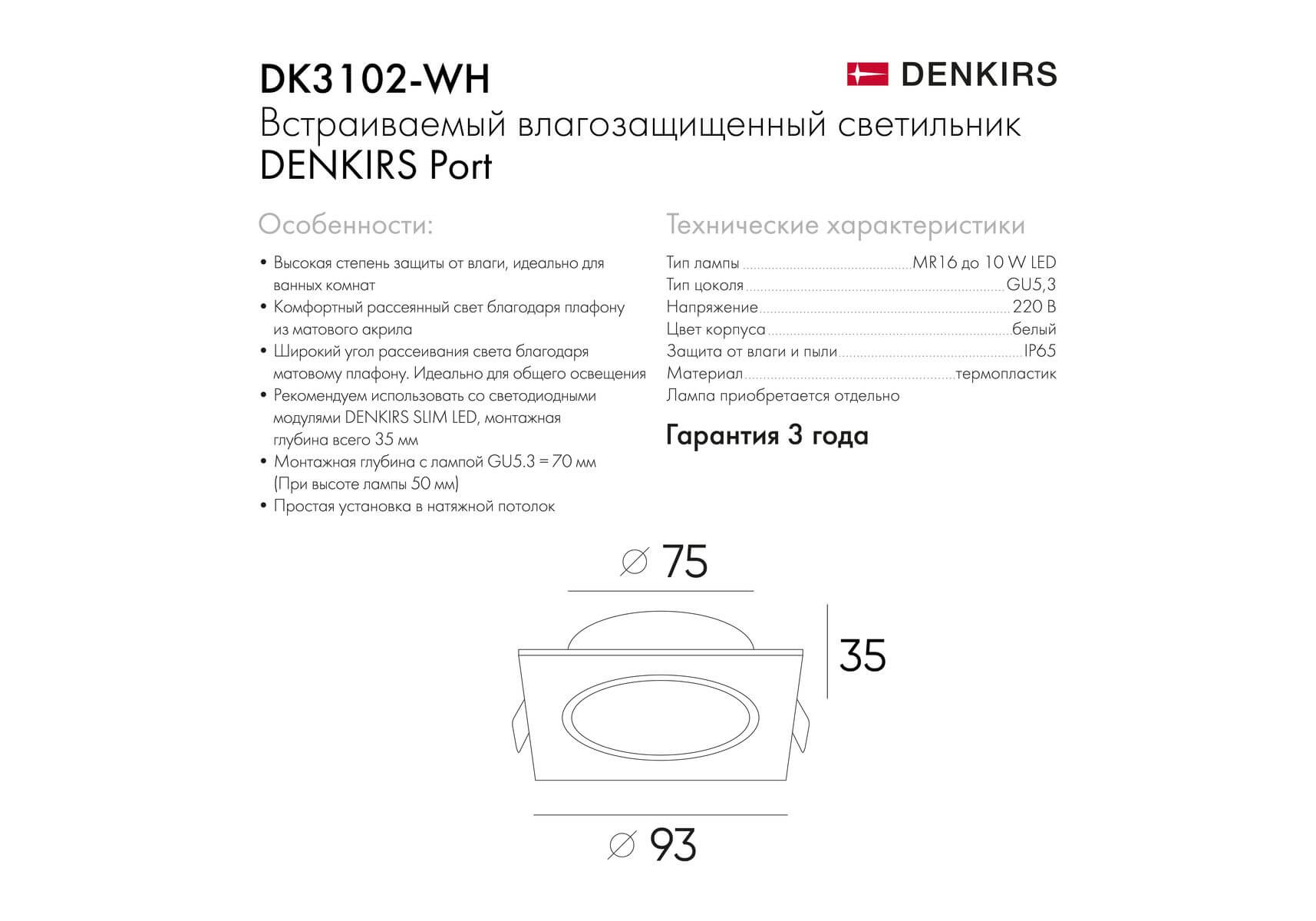 Встраиваемый светильник Denkirs Port DK3102-WH