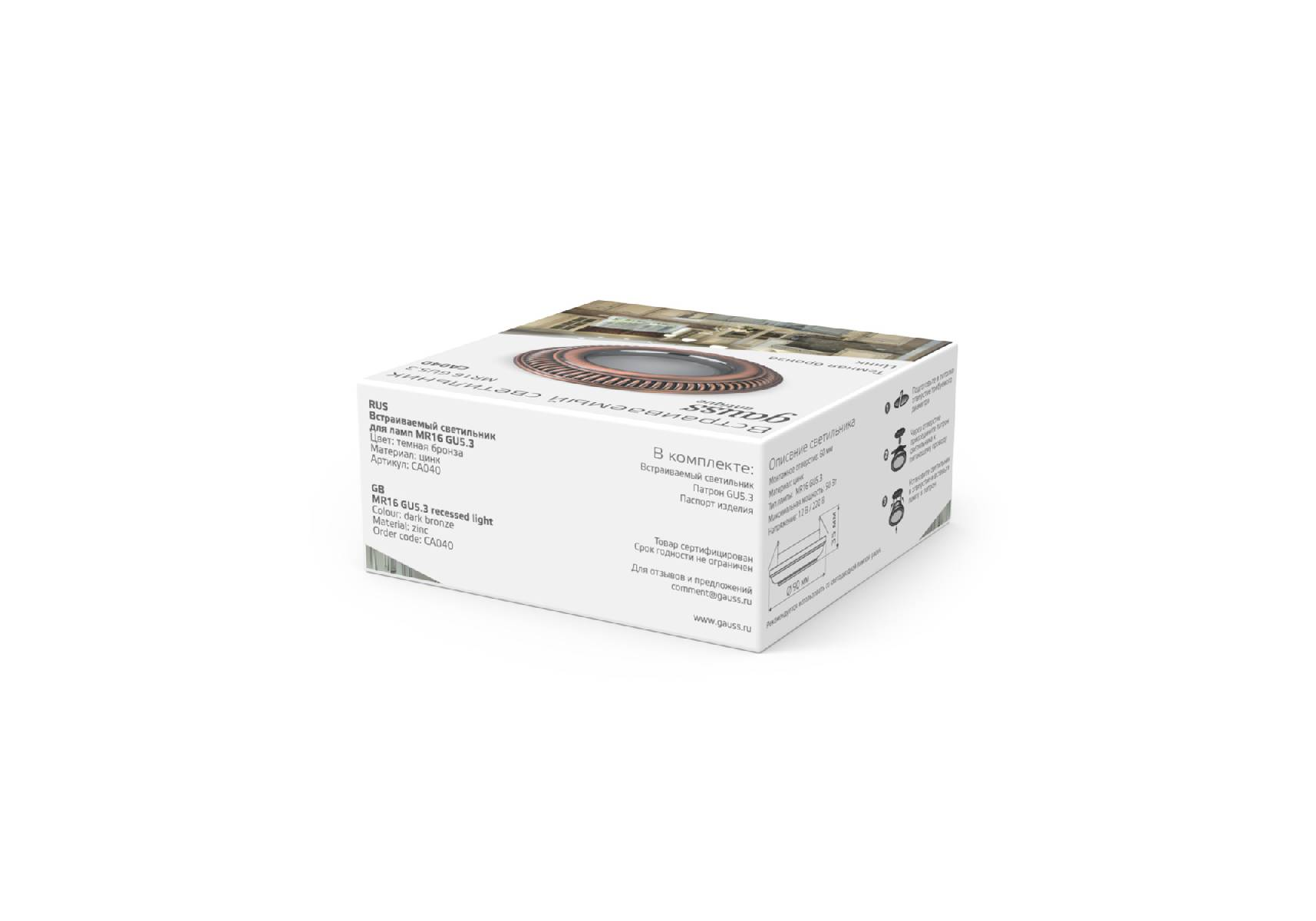 Встраиваемый светильник Gauss Antique CA040