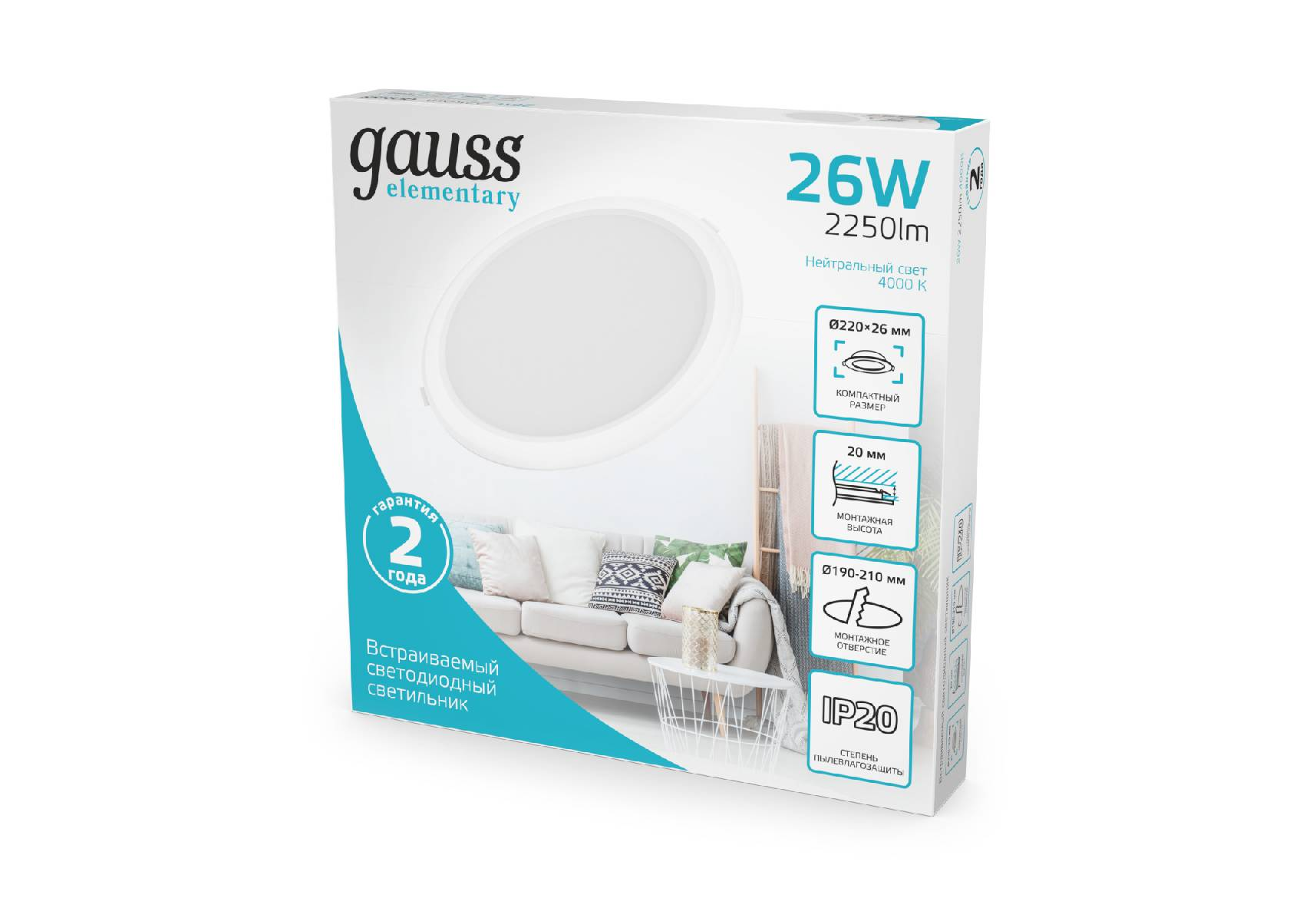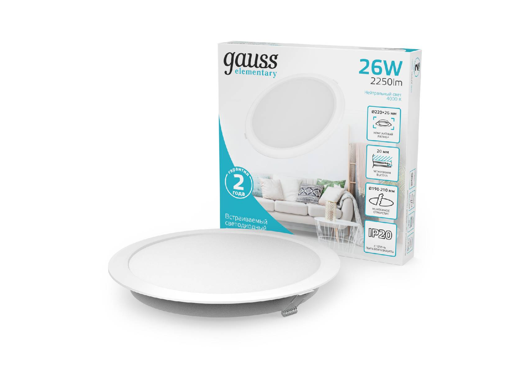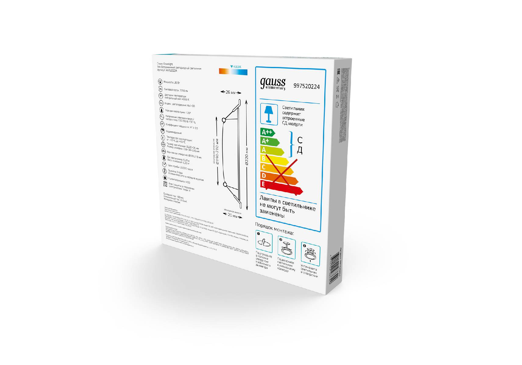 Встраиваемый светильник Gauss Elementary Downlight 997520224