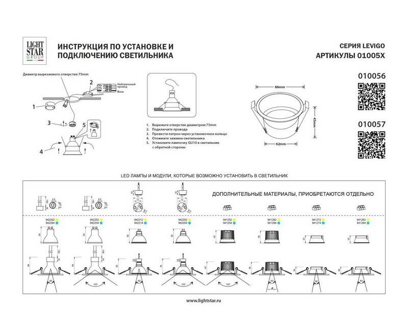 Встраиваемый светильник Lightstar Levigo 010056