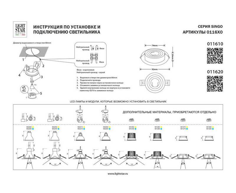 Встраиваемый светильник MR16 Lightstar Singo Base 011620