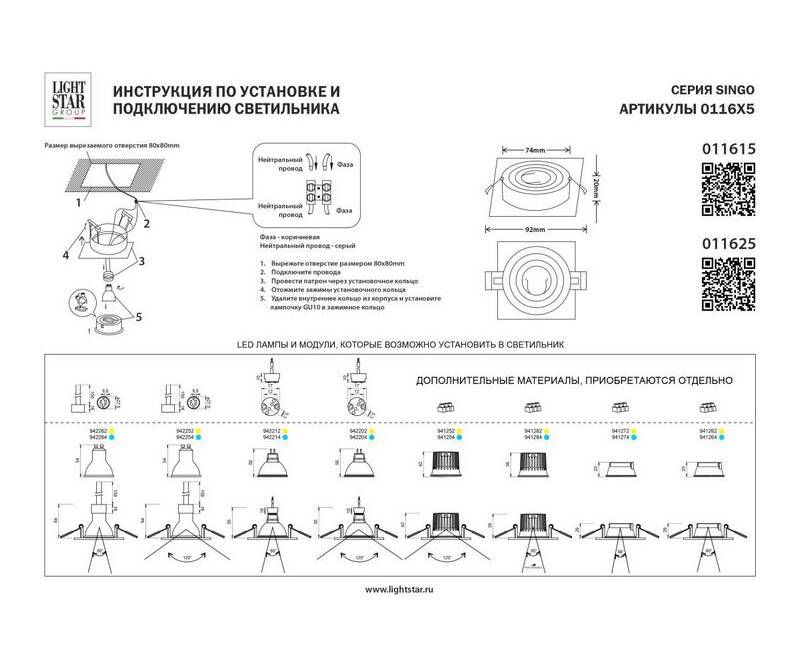 Встраиваемый светильник MR16 Lightstar Singo Base 011625