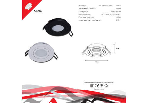 Встраиваемый светильник Reluce 16060-9.0-001LD MR16 BK