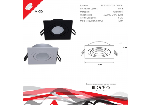 Встраиваемый светильник Reluce 16061-9.0-001LD MR16 WT