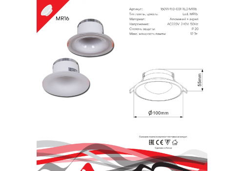 Встраиваемый светильник Reluce 16091-9.0-001RLD MR16 CL
