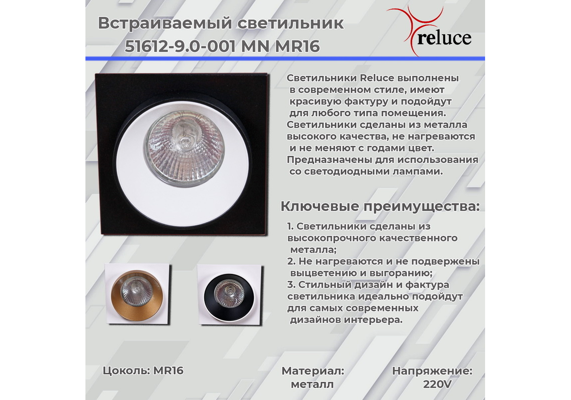 Встраиваемый светильник Reluce 51612-9.0-001MN MR16 WH+GD