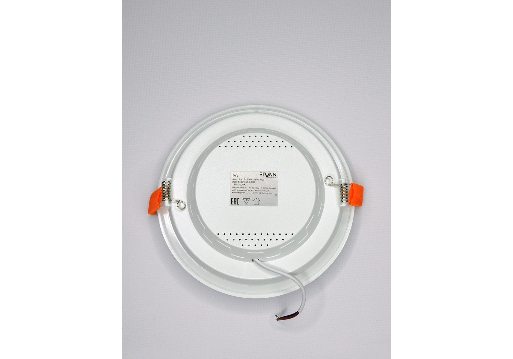 Встраиваемый светодиодный светильник Elvan VLS-106R-18W-WW-Wh