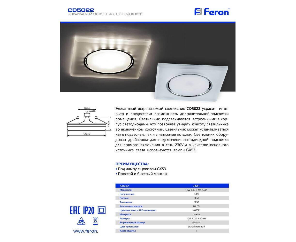 Встраиваемый светодиодный светильник Feron CD5022 32661