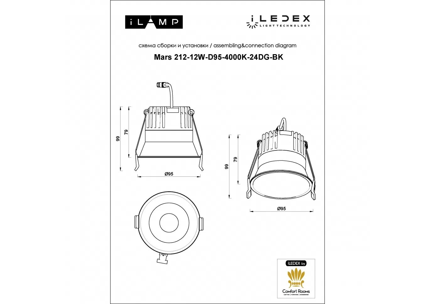 Встраиваемый светодиодный светильник iLedex Mars 212-12W-D95-4000K-24DG-BK