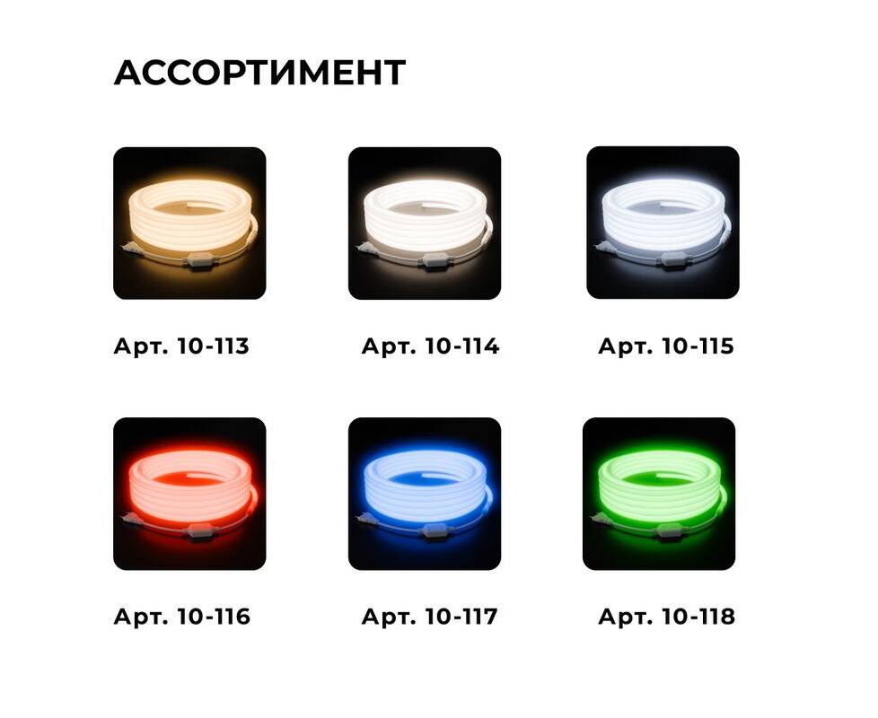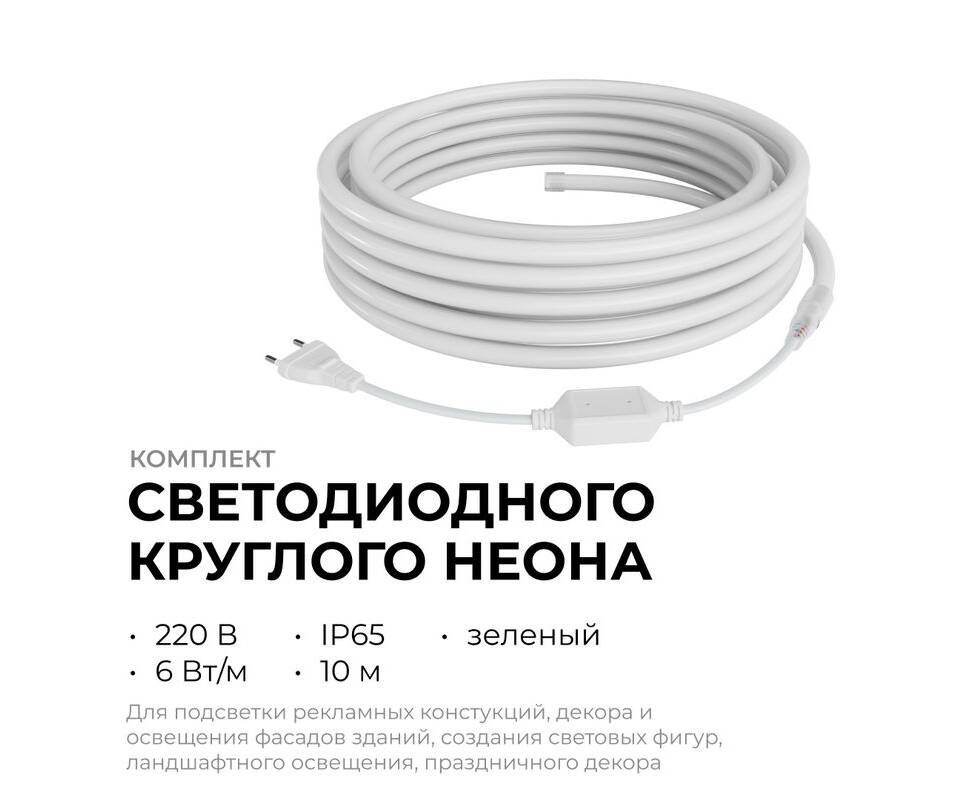 Комплект светодиодного неона Apeyron 220В, 6Вт/м, зеленый, smd 2835, 144д/м 10м, IP65, с аксессуара