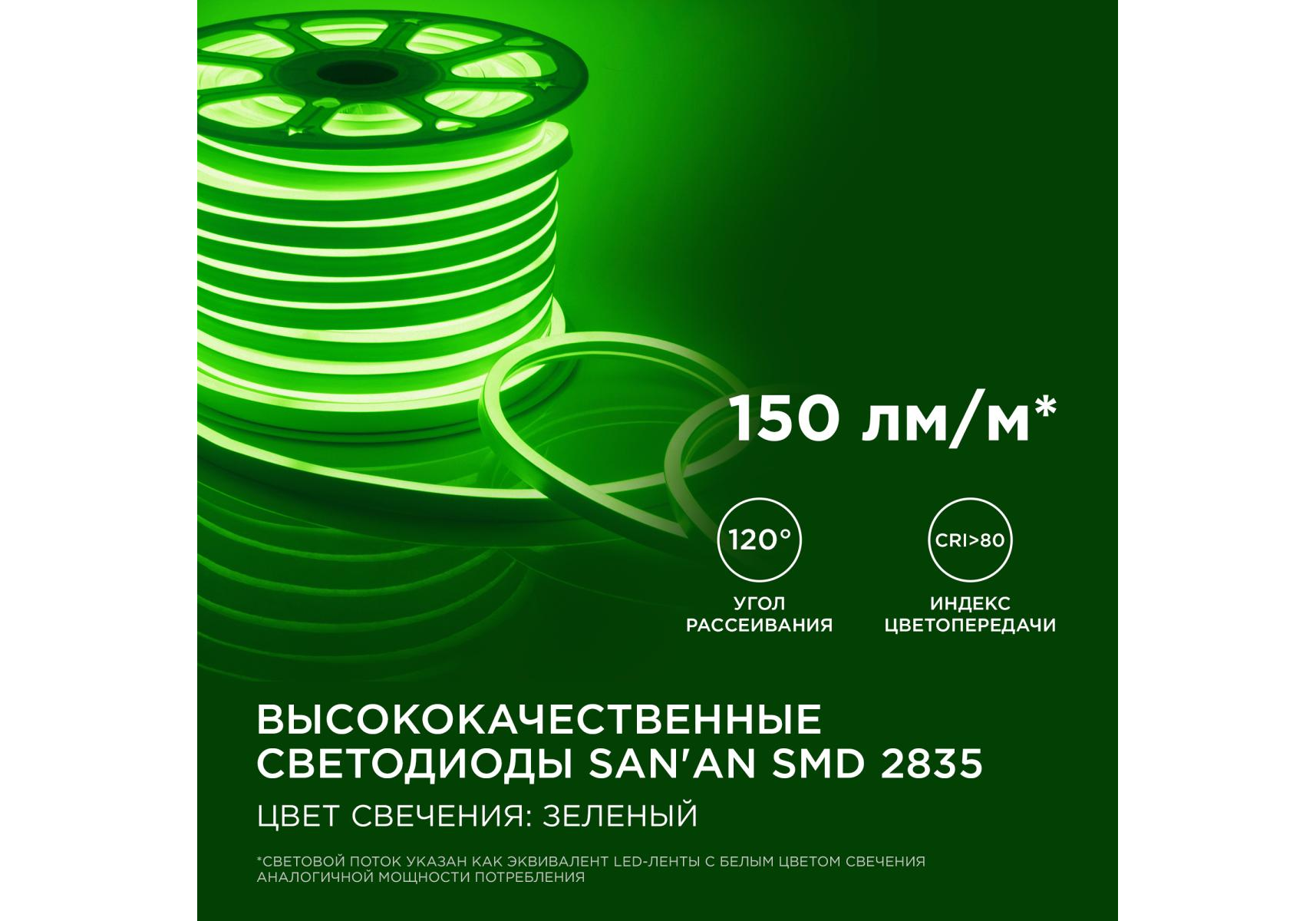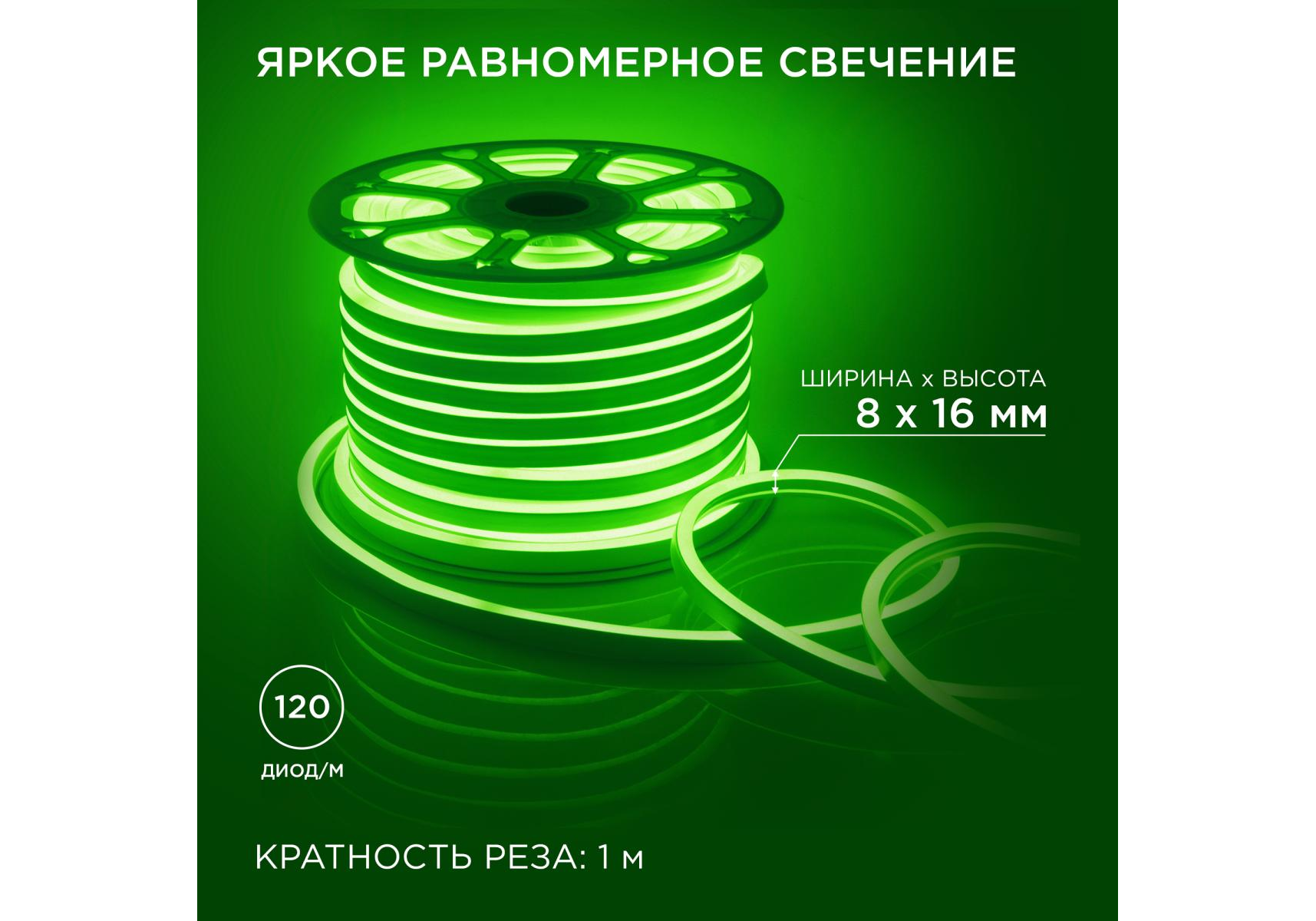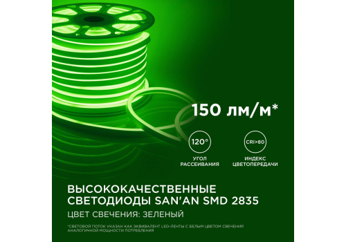 Светодиодный неон мини Apeyron 220В 5,5Вт/м smd2835 120д/м IP65 50м зеленый 17-37