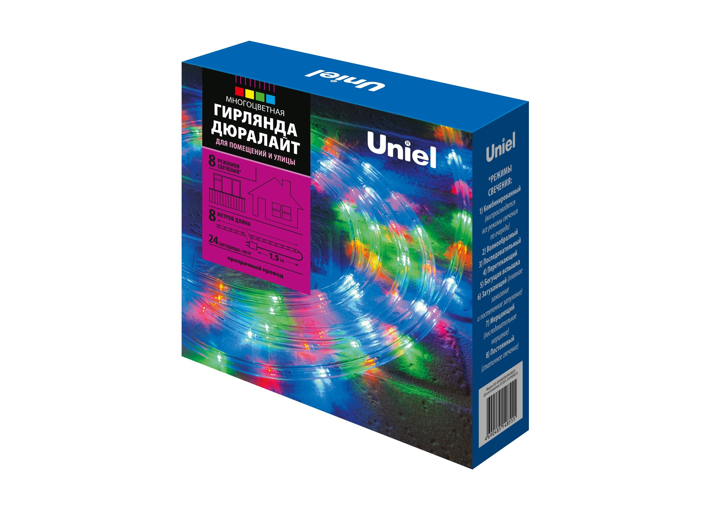 Дюралайт Uniel ULD-D50 8M/С08 IP44 MULTI UL-00008571