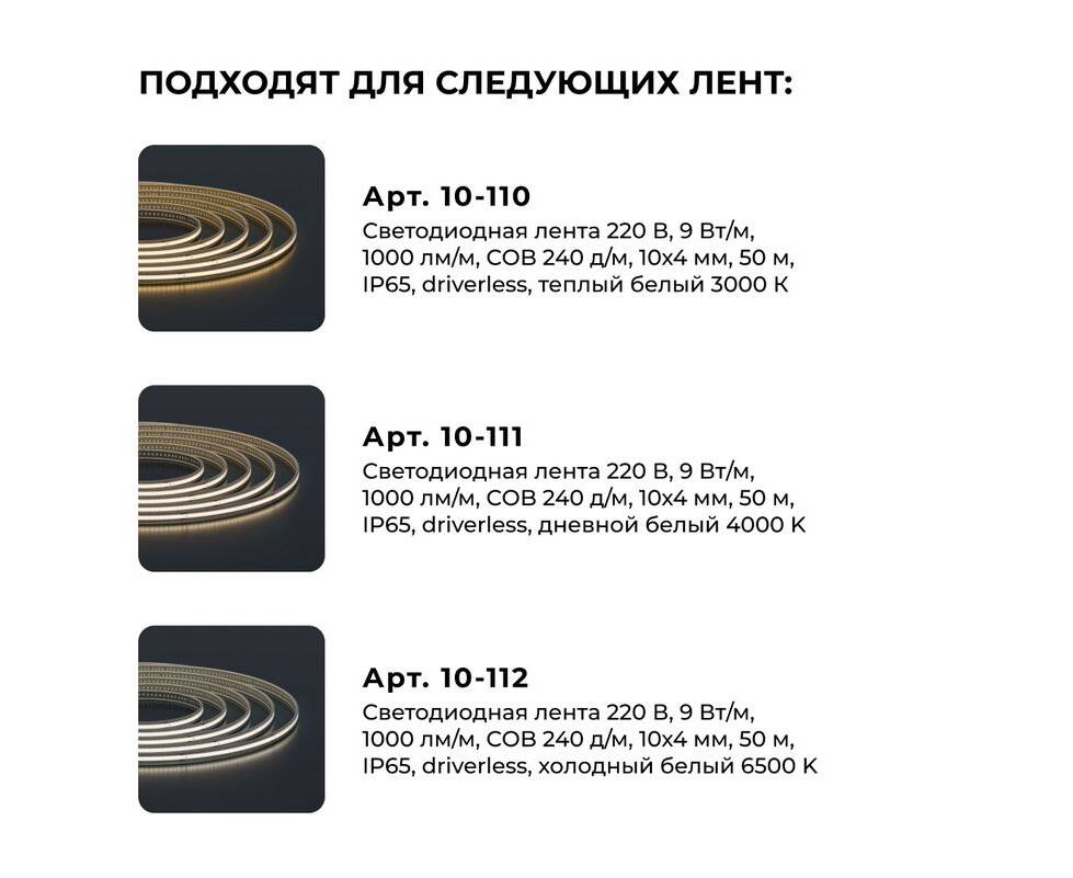 Комплект (10шт) крепежей для светодиодной ленты Apeyron COB 220В-driverless 10-110/111/112 09-147