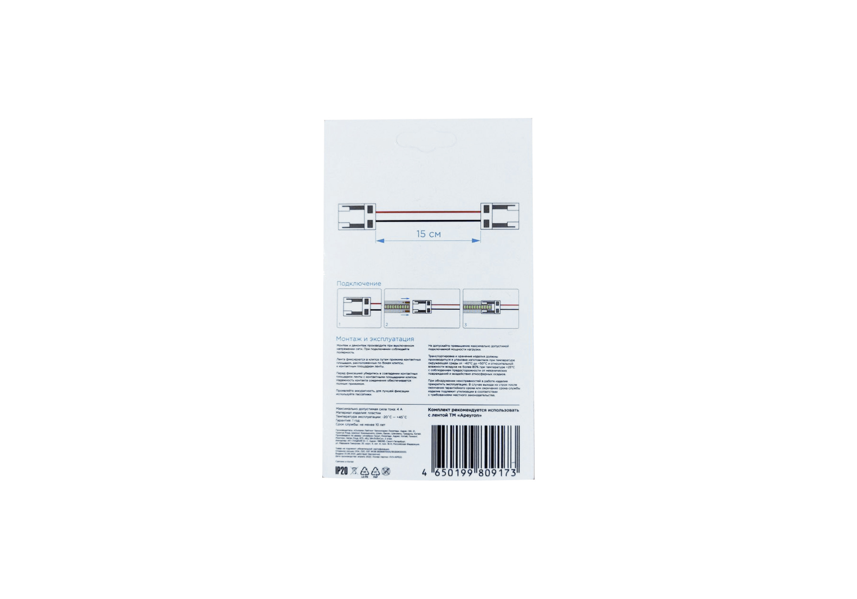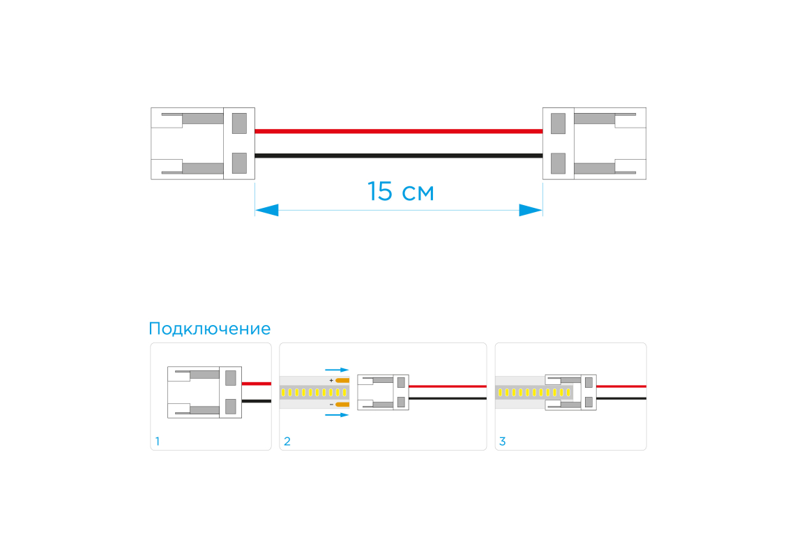 Комплект коннекторов Apeyron (2 клипсы с проводами) для одноцвсветодиодленты 12/24В COB, IP20 подлож