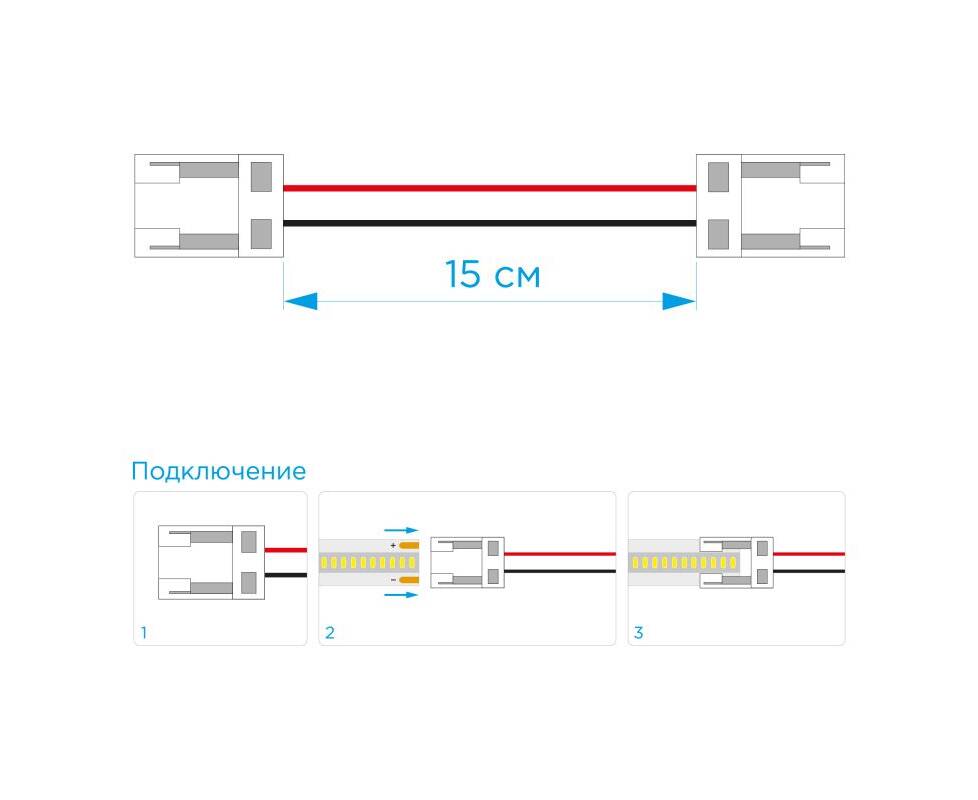 Комплект коннекторов Apeyron (2 клипсы с проводами) для одноцвсветодиодленты 12/24В COB, IP20 подлож