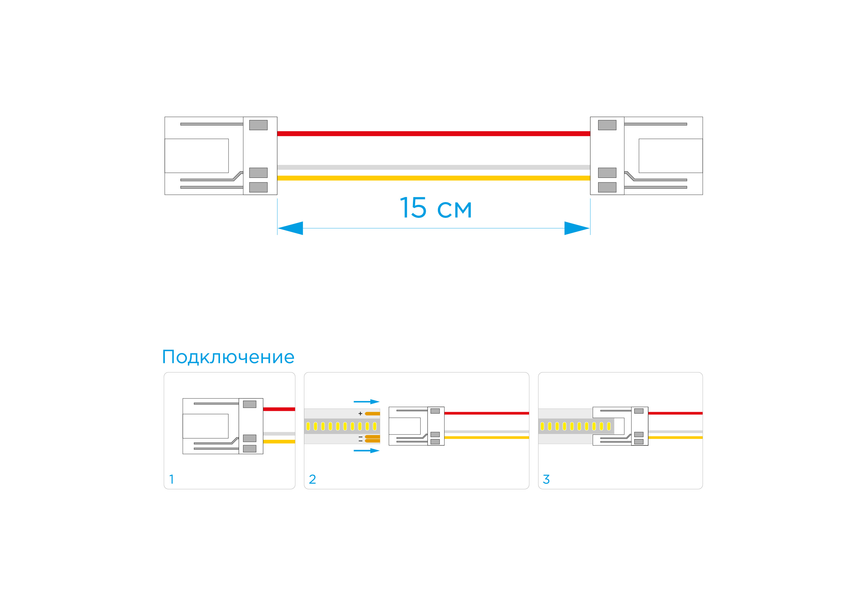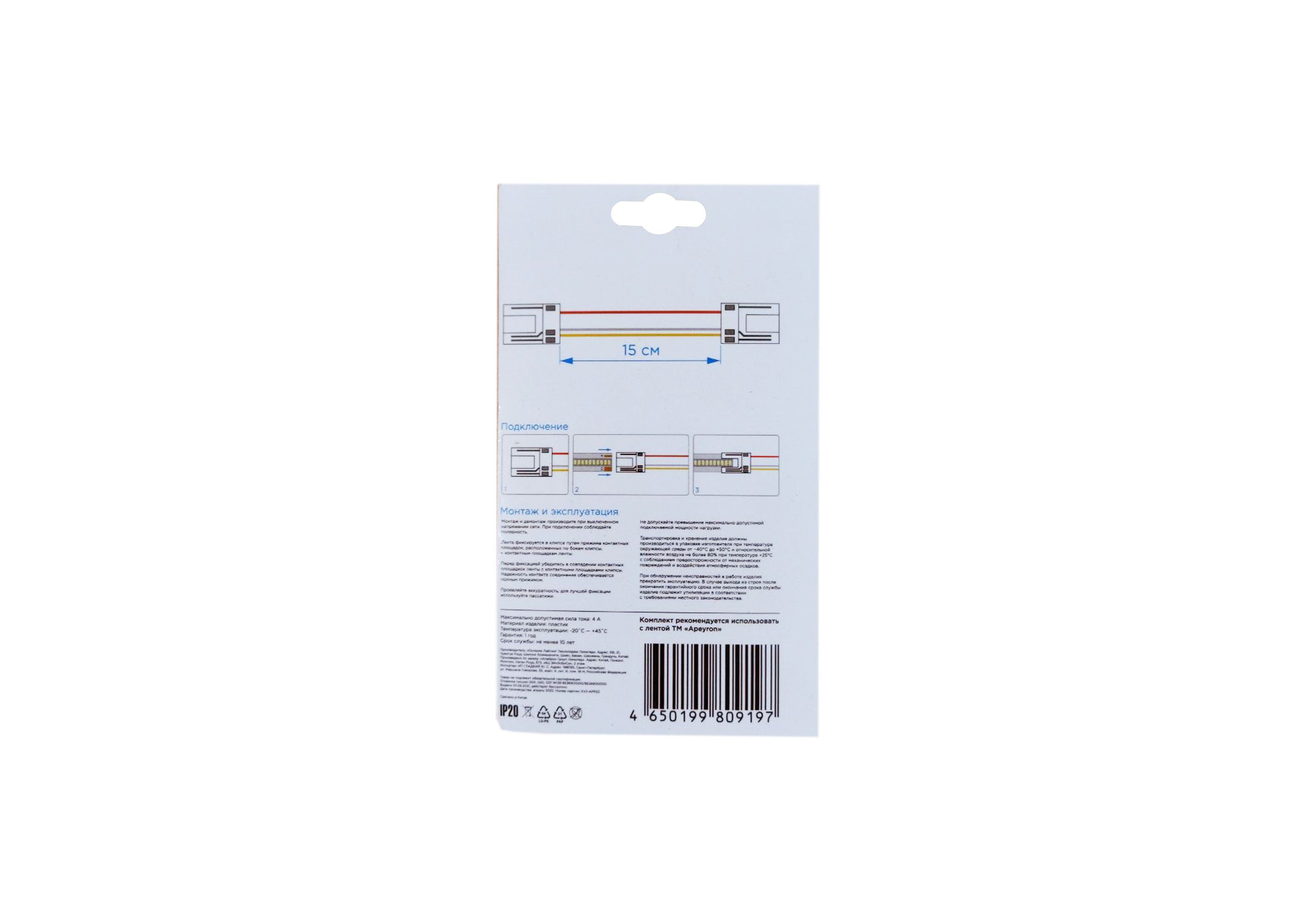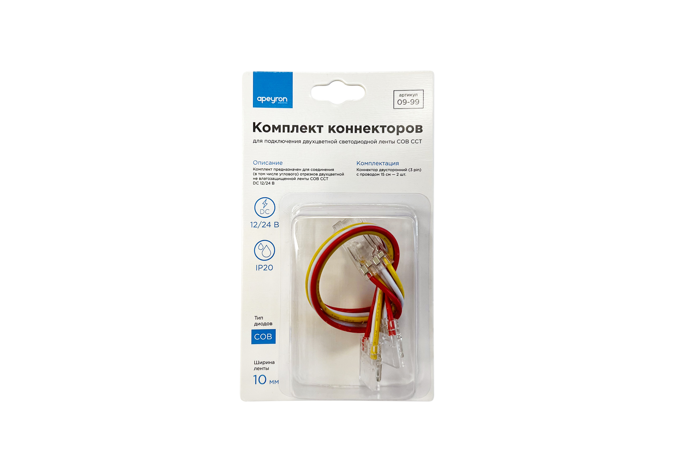 Комплект коннекторов Apeyron (2 клипсы с проводами) для светодиодленты 12/24В COB, ССТ IP20 подложка