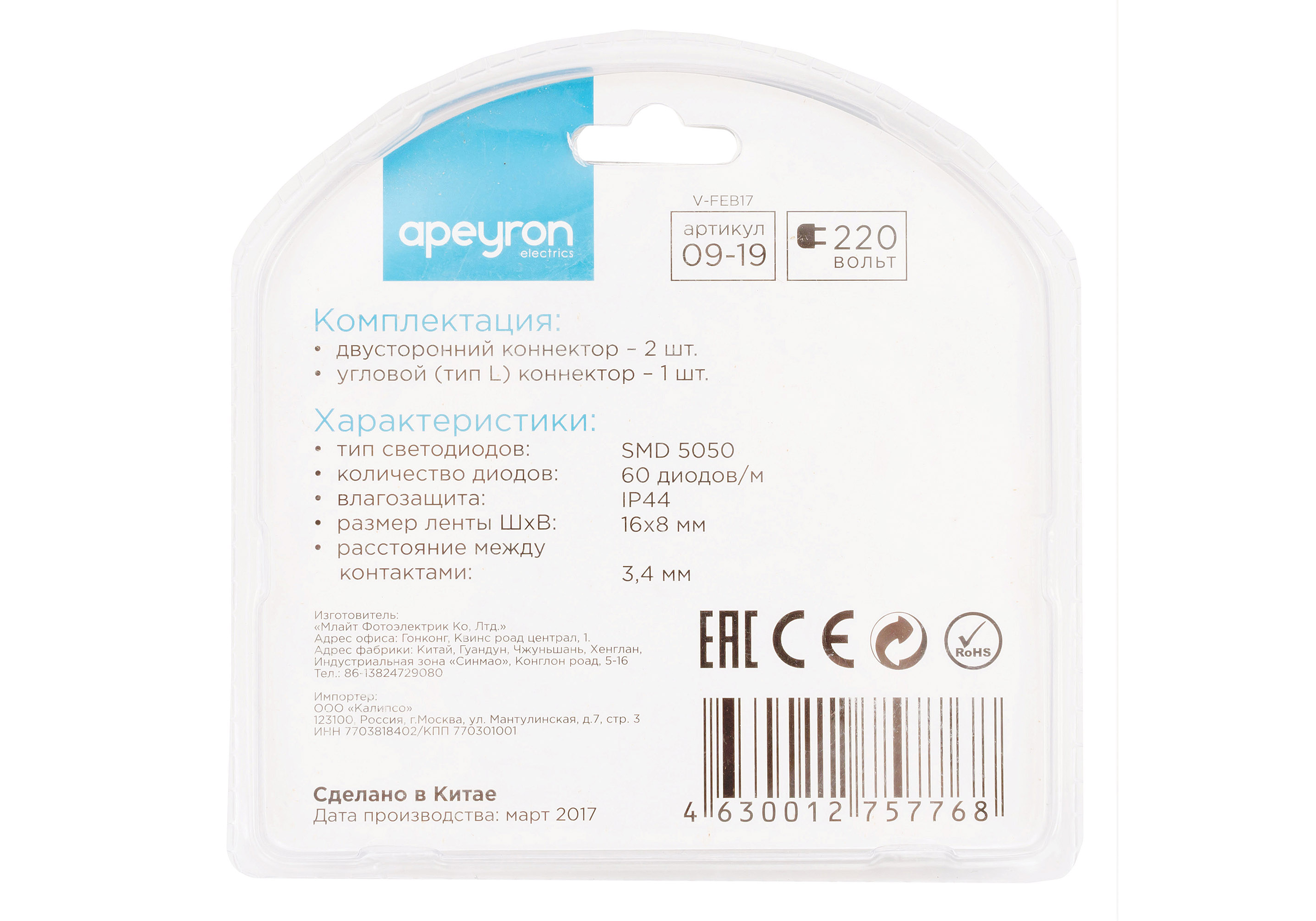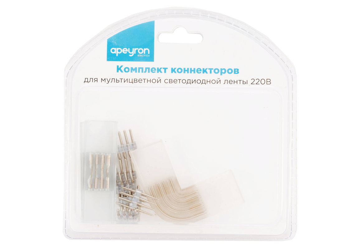 Комплект коннекторов Apeyron (прямой и L-образный) светодиодной ленты 220В smd5050 60д/м RGB 09-19