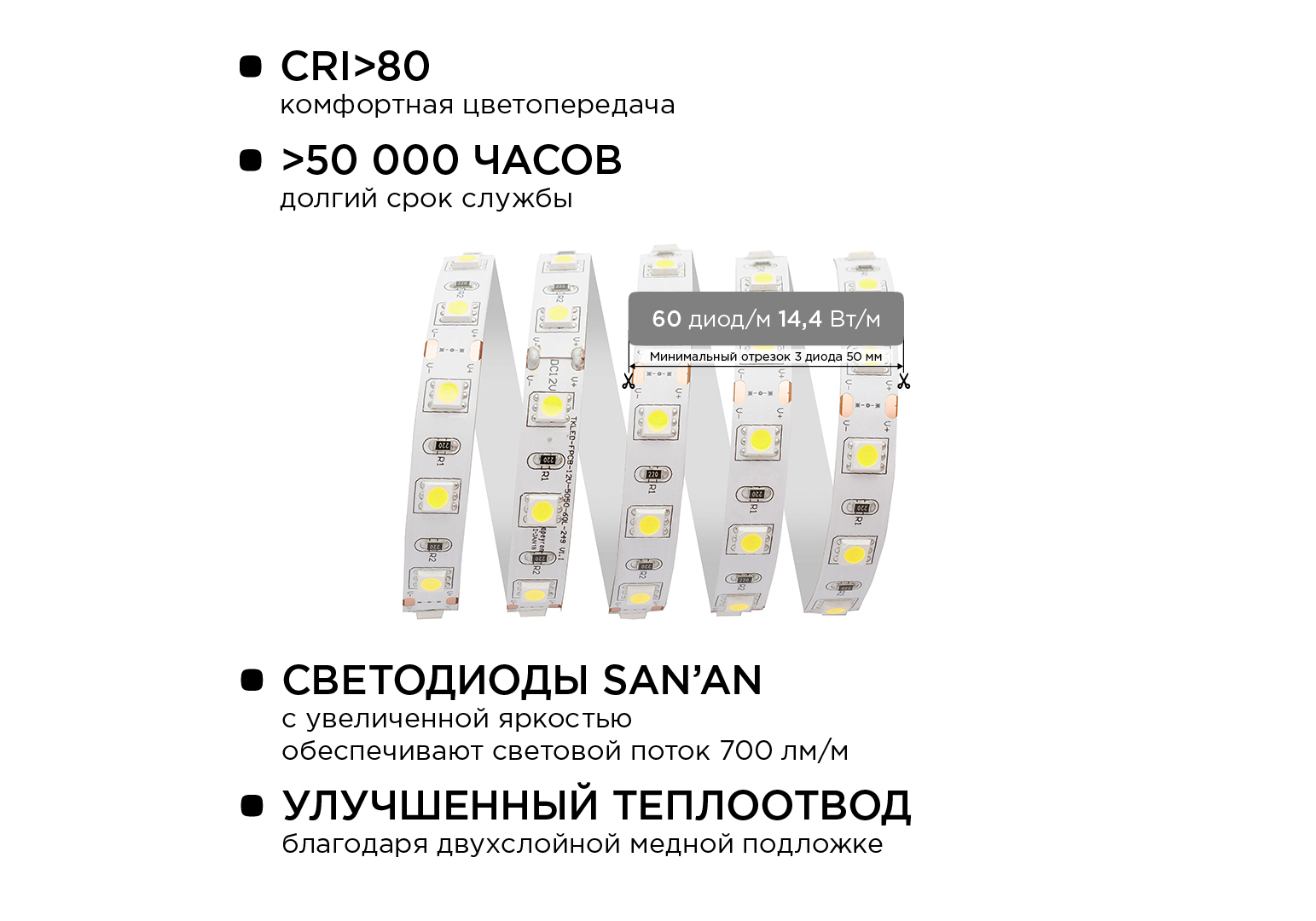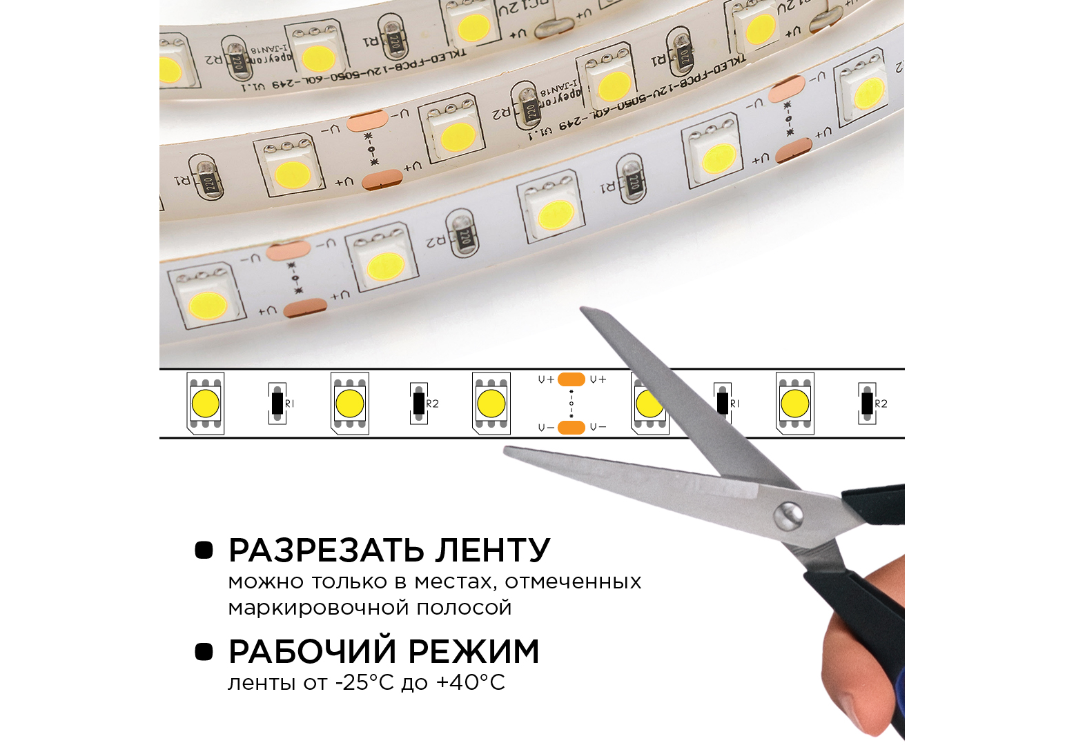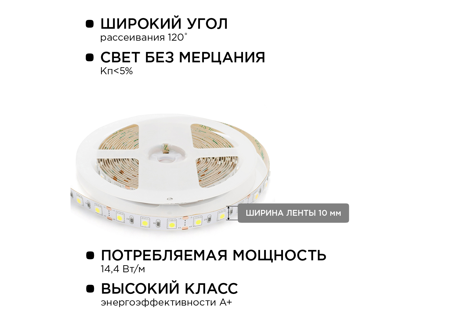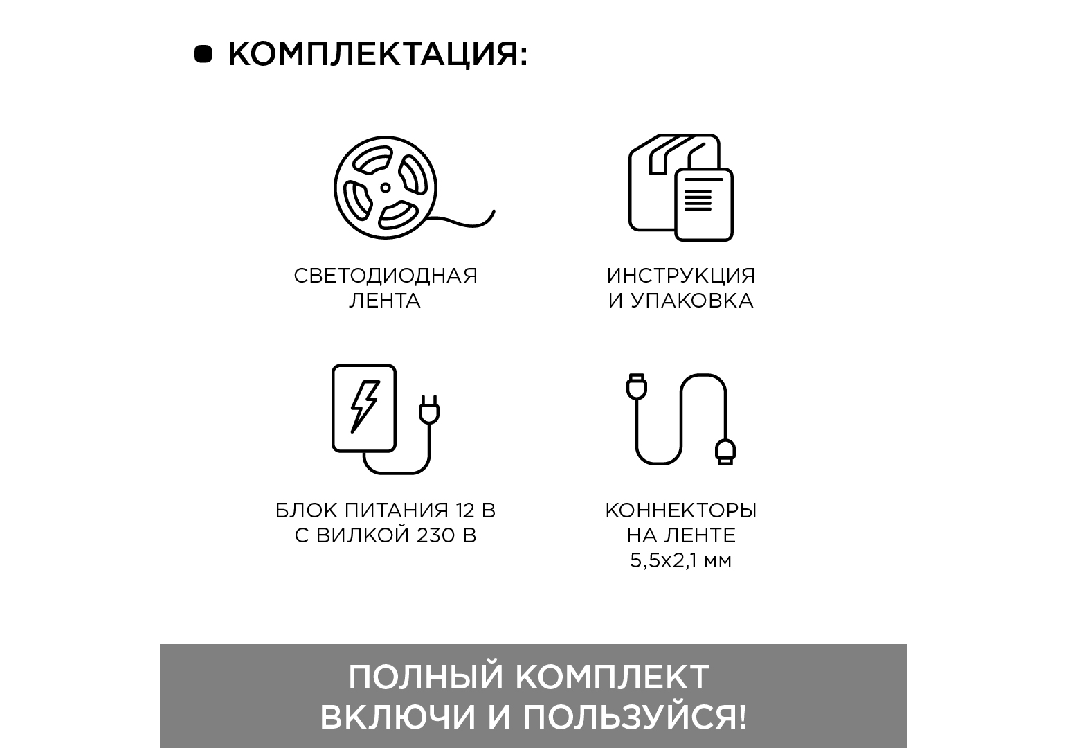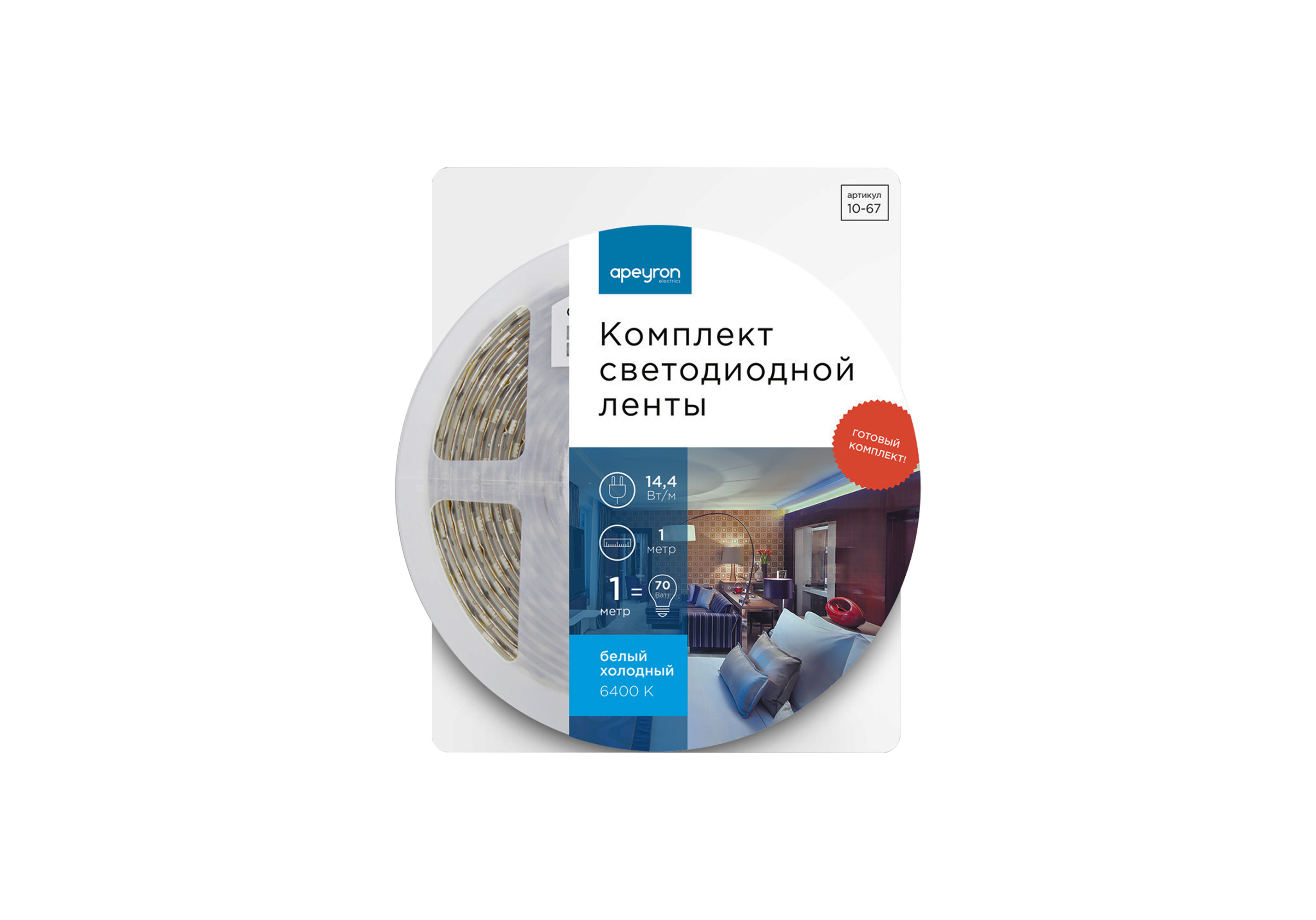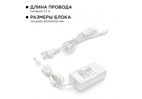 Комплект светодиодной ленты Apeyron 12В 144Вт/м smd 5050 60 д/м IP20 1м 6500К (блок, коннектор) 10-6