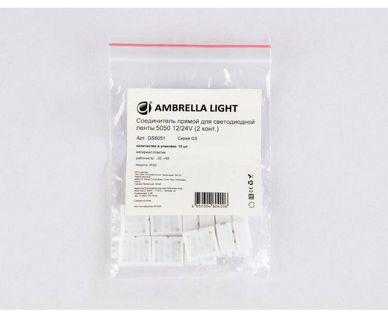 Соединитель прямой для светодиодной ленты 5050 12/24V (2 конт.) GS6051 (10шт) Ambrella Light Illumin