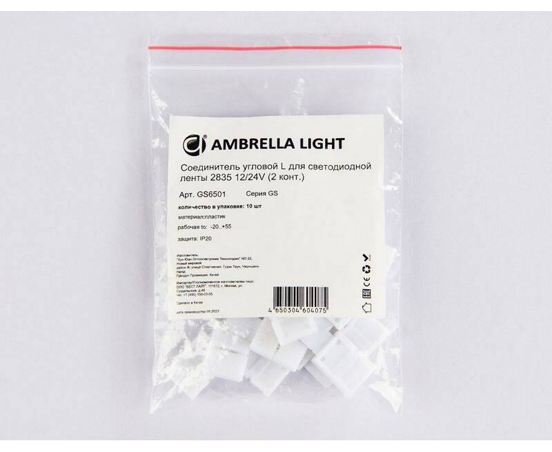 Соединитель угловой L для светодиодной ленты 2835 12/24V (2 конт.) GS6501 (10шт) Ambrella Light Illu