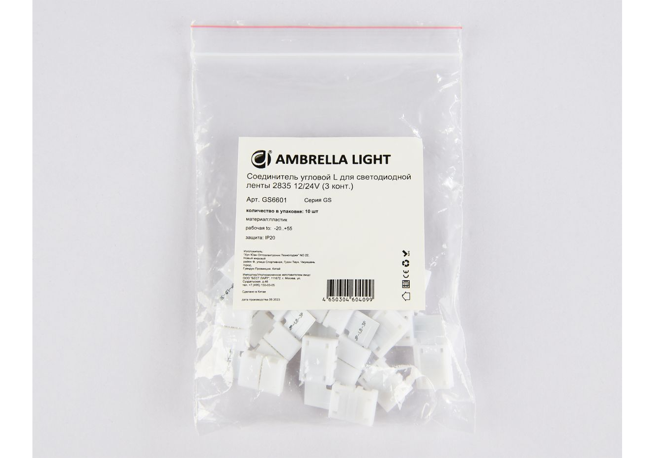 Соединитель угловой L для светодиодной ленты 2835 12/24V (3 конт.) GS6601 (10шт) Ambrella Light Illu