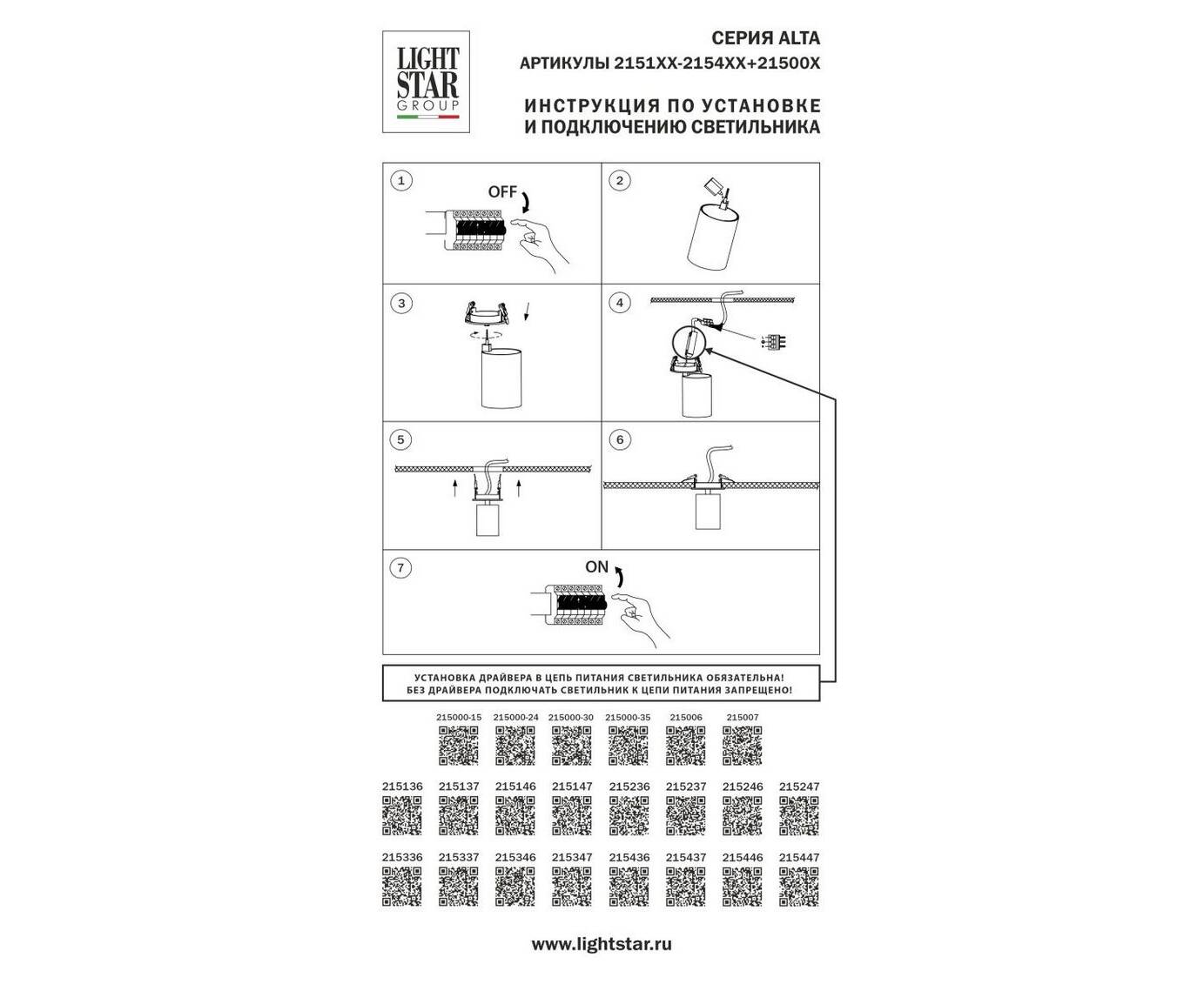 Блок питания 15W д/серии Alta 2151XX, 2155XX Lightstar 215000-15