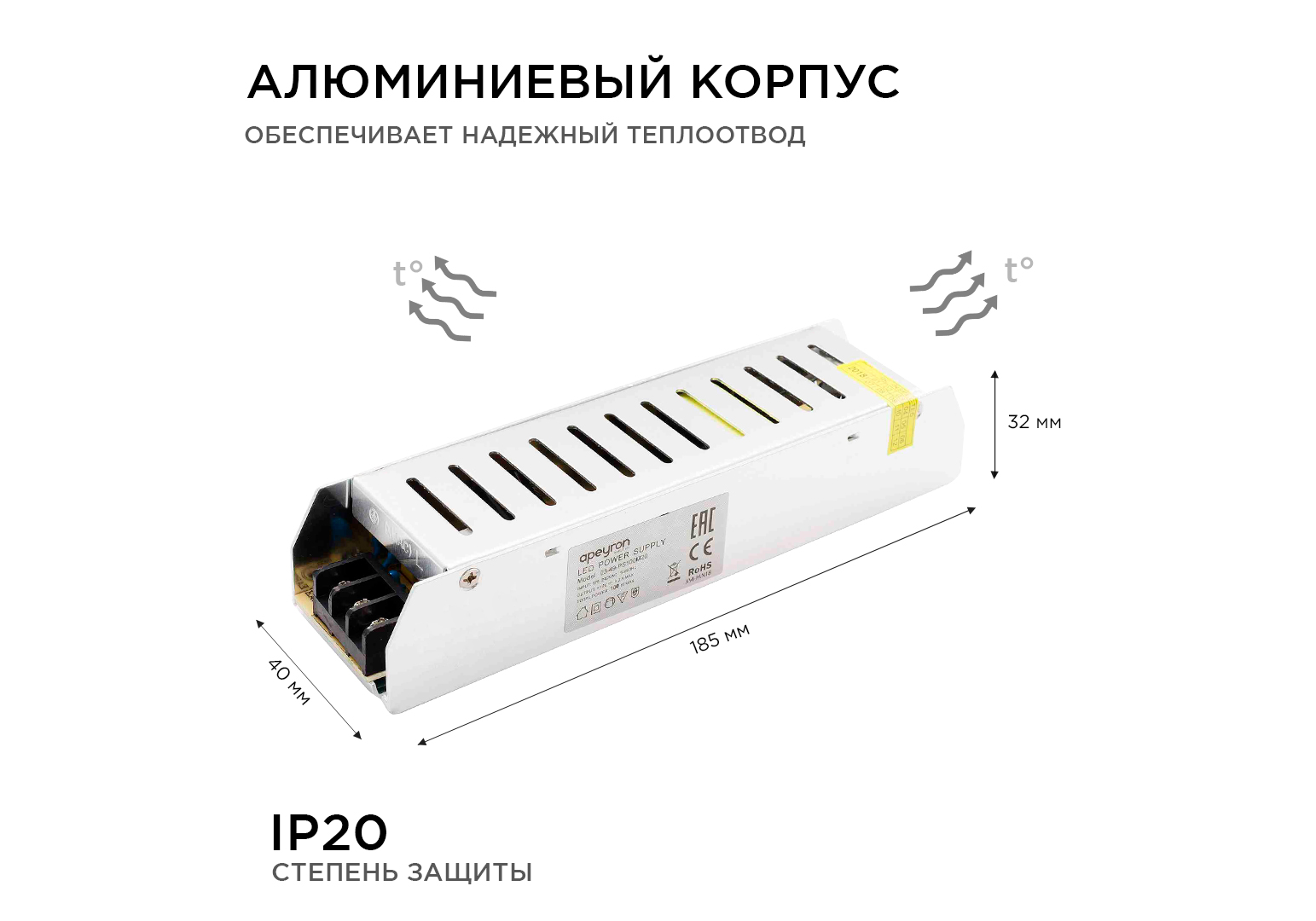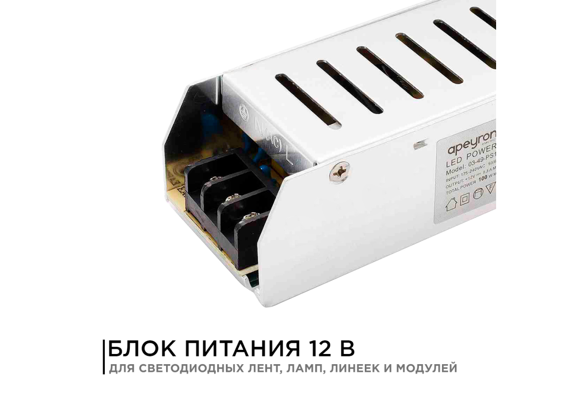 Блок питания Apeyron 12В 100Вт IP20 8,3А 03-49