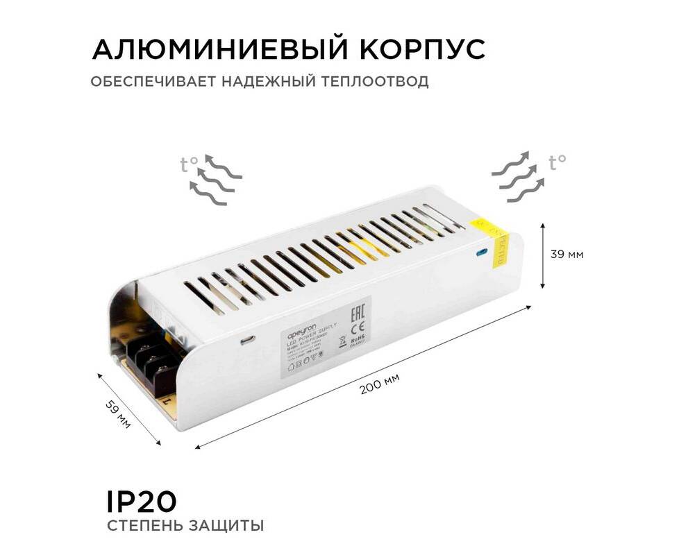 Блок питания Apeyron 12В 150Вт IP20 12, А 03-50