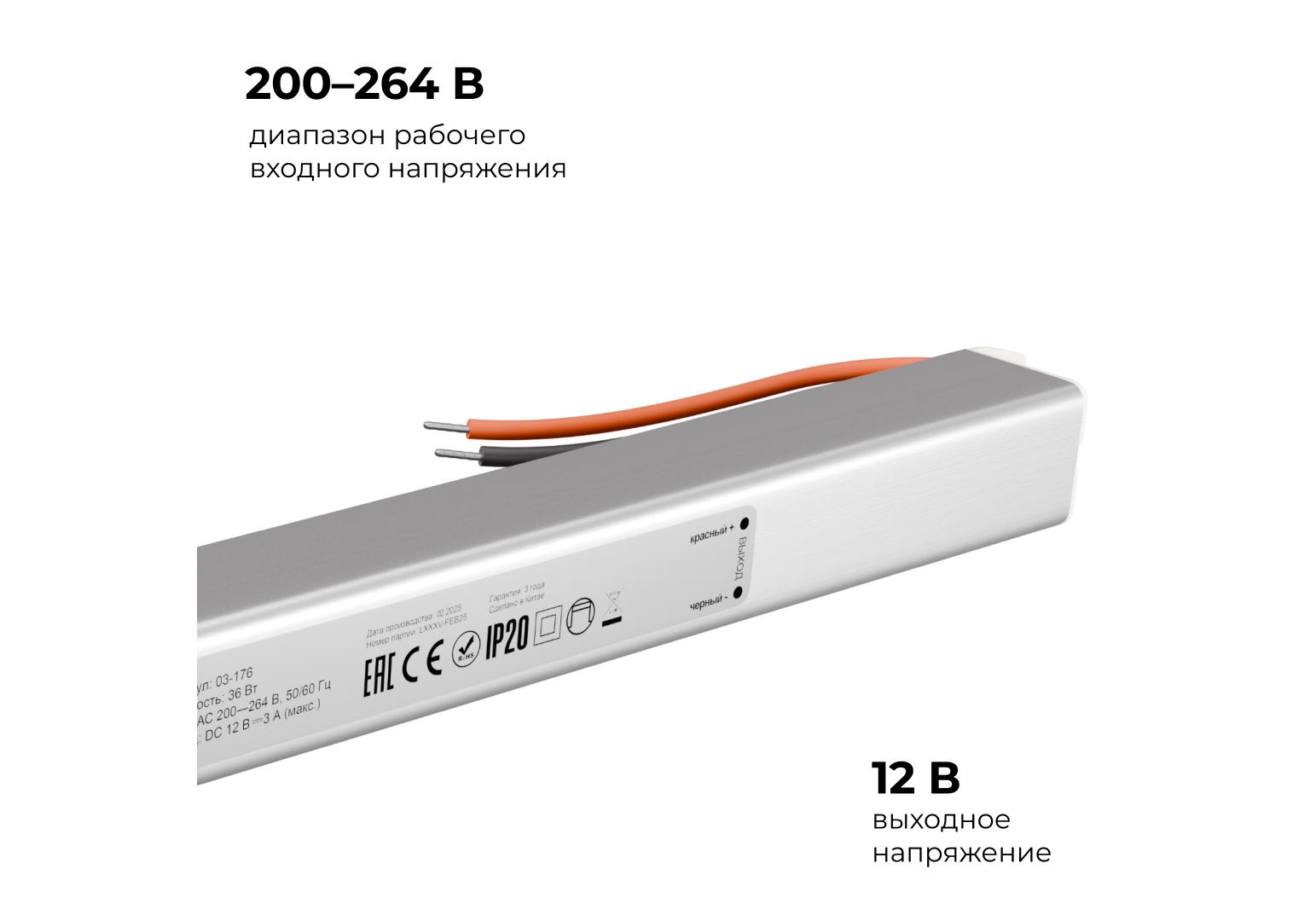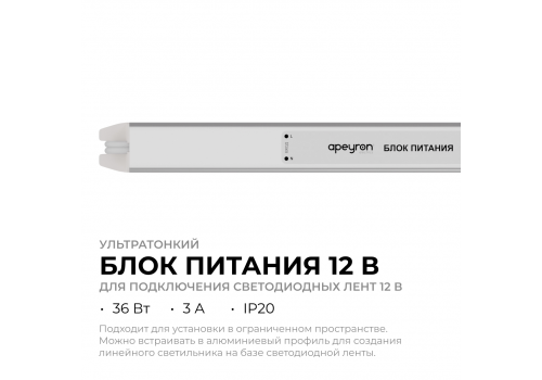 Блок питания Apeyron 12В, 36Вт, 200-264В, 3А, IP20 03-176