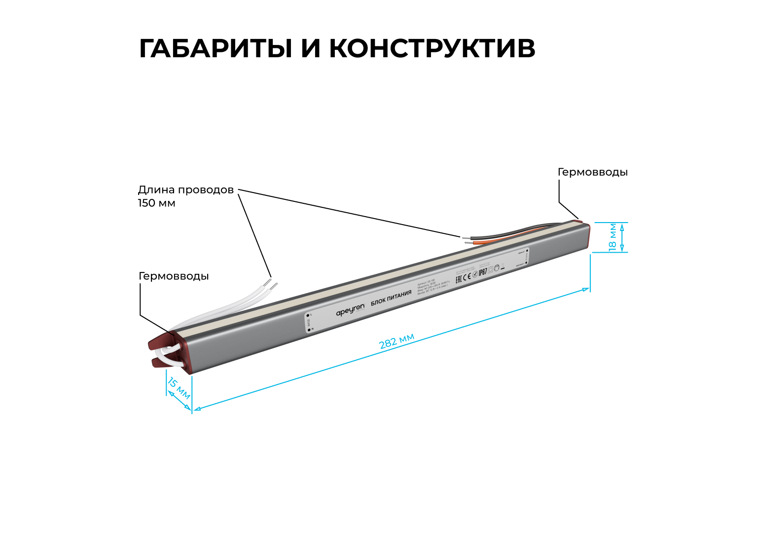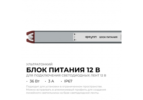 Блок питания Apeyron 12В, 36Вт, 200-264В, 3А, IP67 03-180