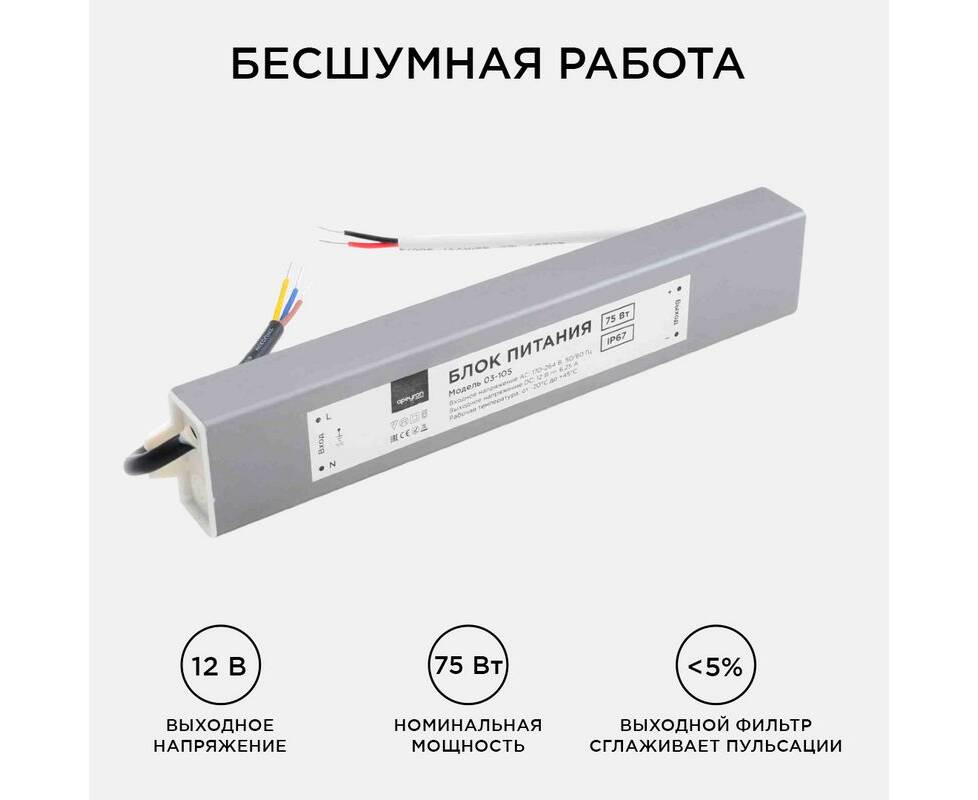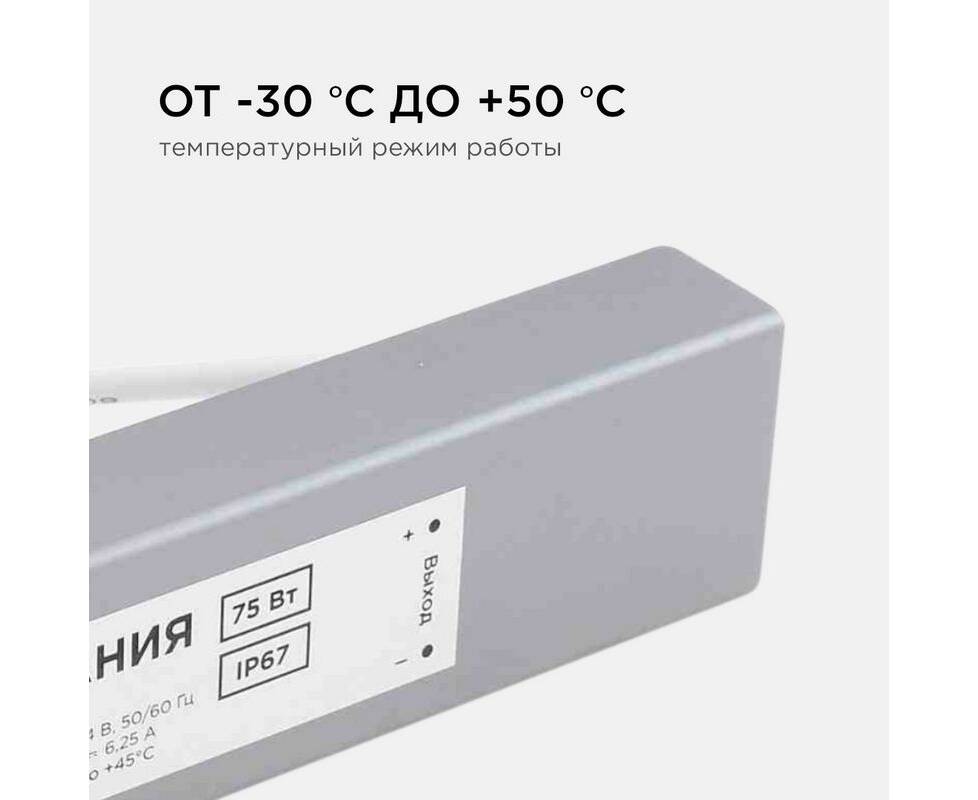 Блок питания Apeyron 12В (СТ) 75Вт импульсный IP67 170-264В 6,25А 03-105