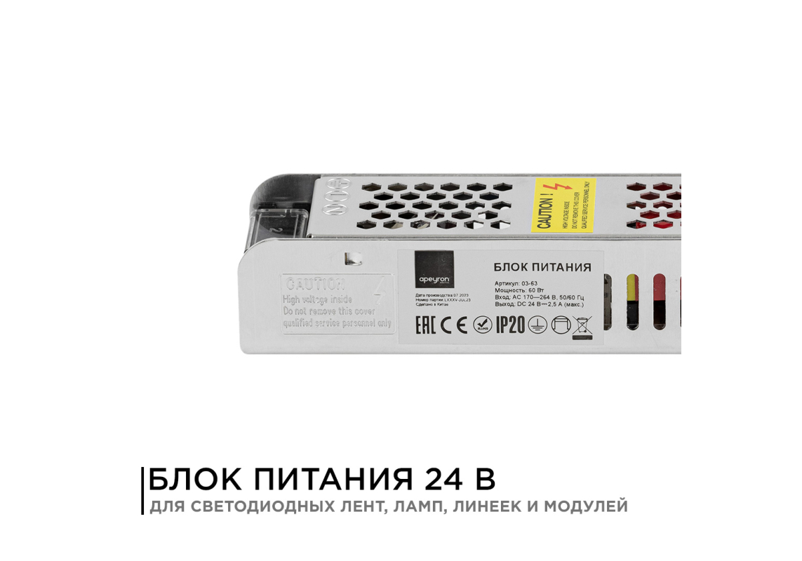 Блок питания Apeyron 24В 60 Вт IP20 2,5А 03-63