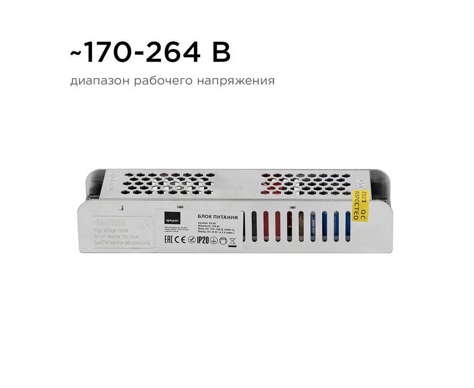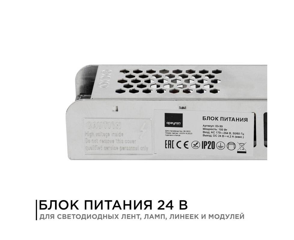 Блок питания Apeyron 24В (СТ) 100Вт импульсный IP20 170-264В 4,2А 03-99