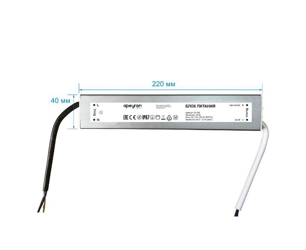 Блок питания Apeyron 75Вт DC24В 3.1А IP67 03-168