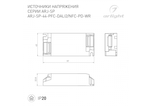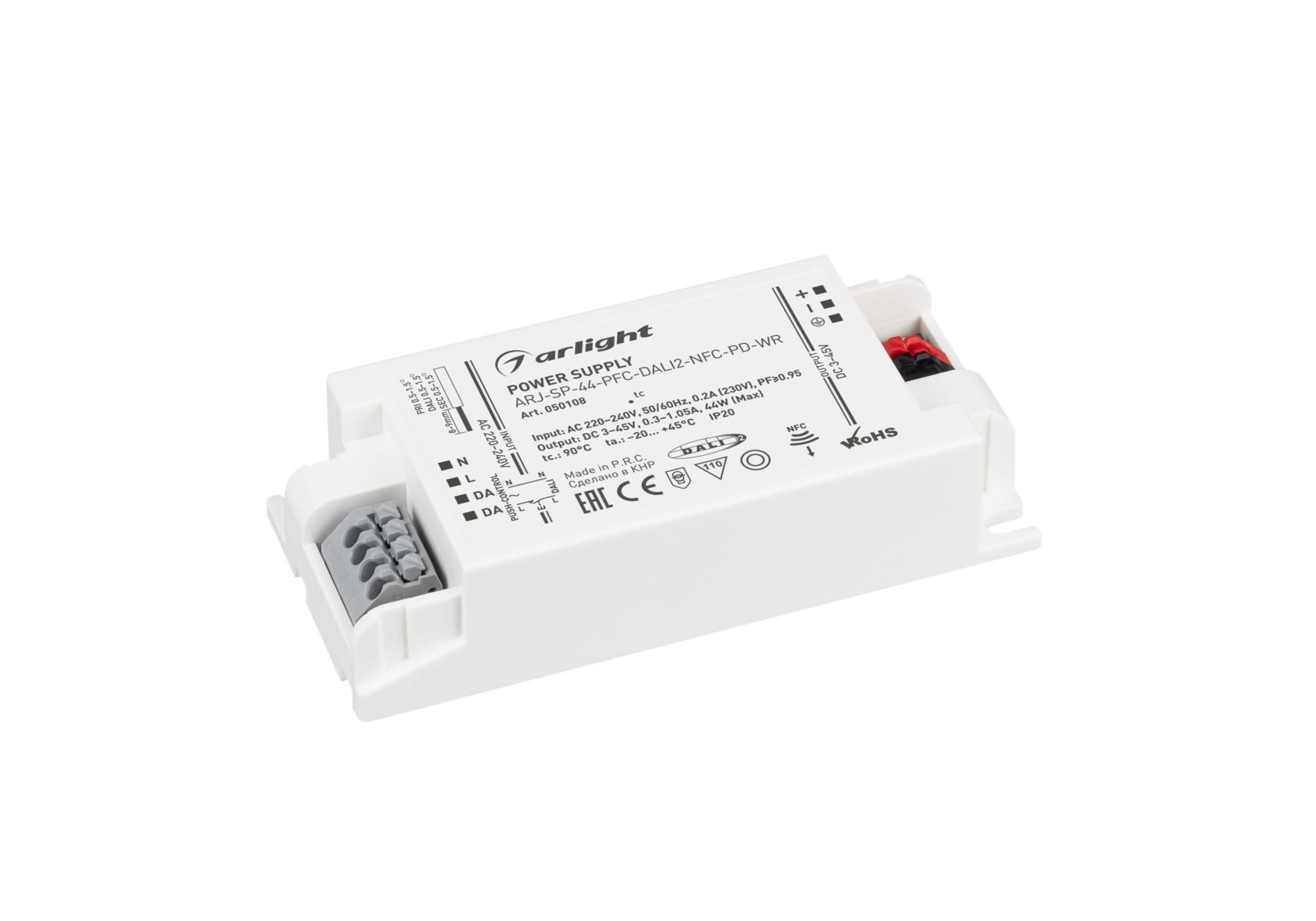 Блок питания Arlight ARJ-SP-44-PFC-DALI2-NFC-PD-WR (44W, 3-45V, 0.3-1.05A) 050108