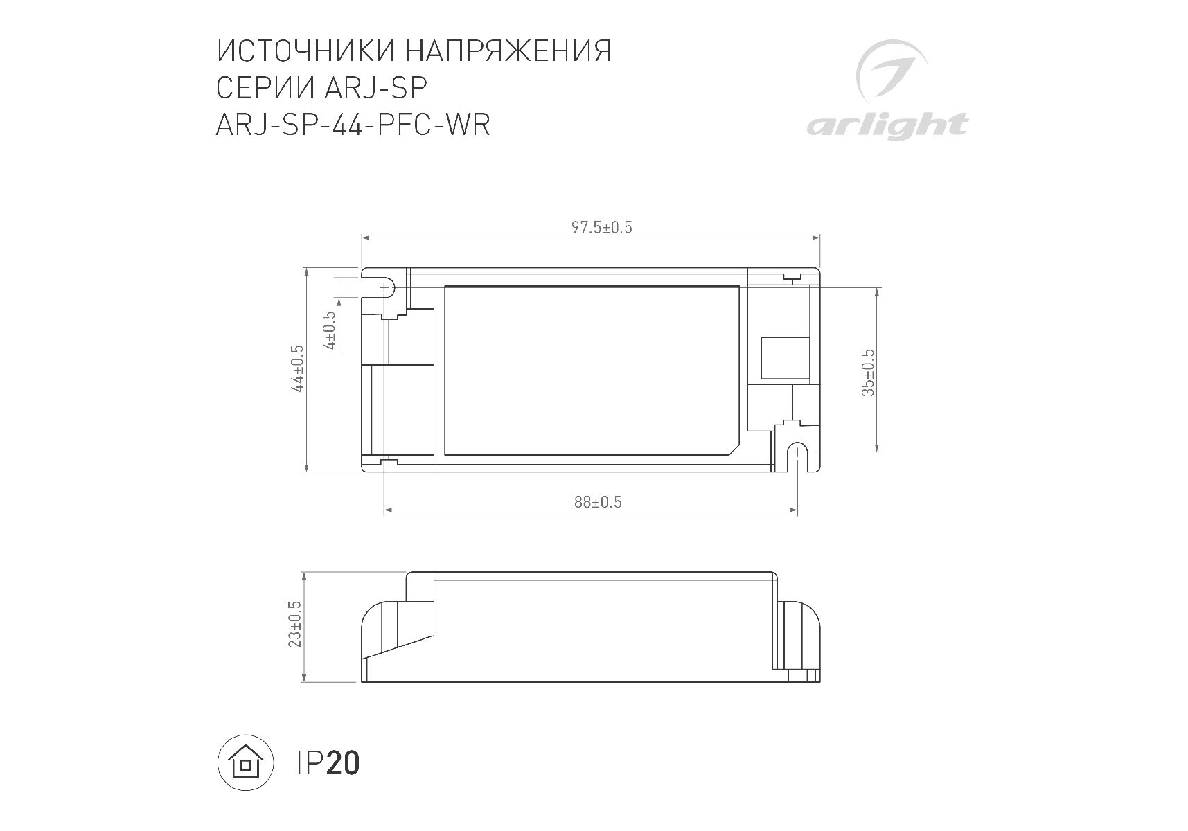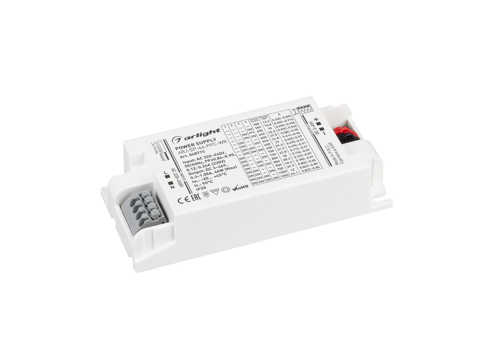 Блок питания Arlight ARJ-SP-44-PFC-WR (44W, 3-45V, 0.3-1.05A) 048715