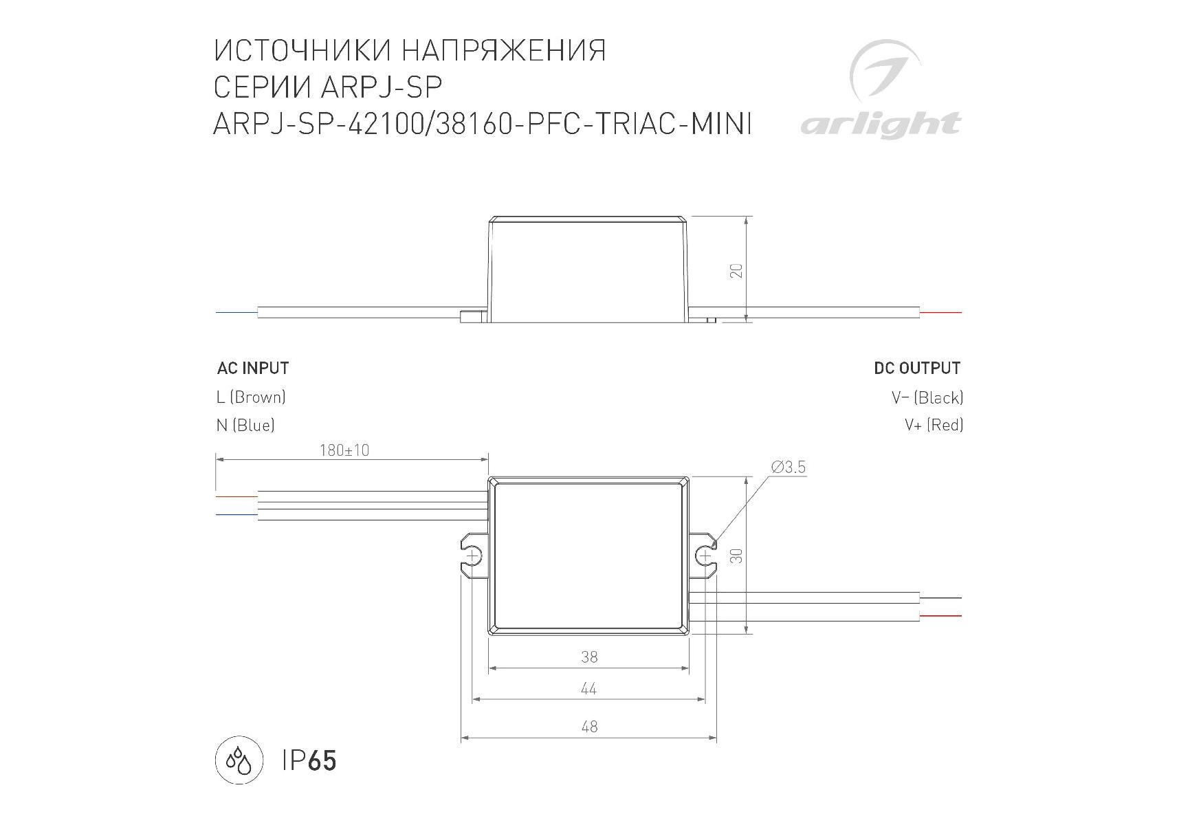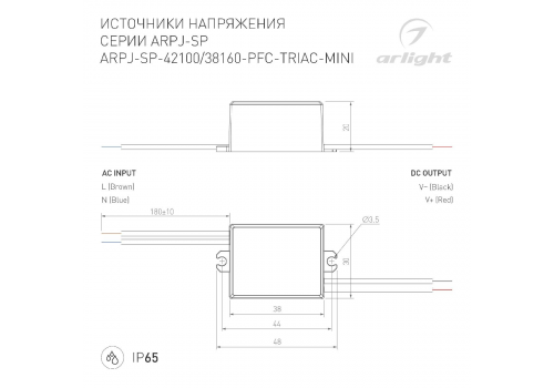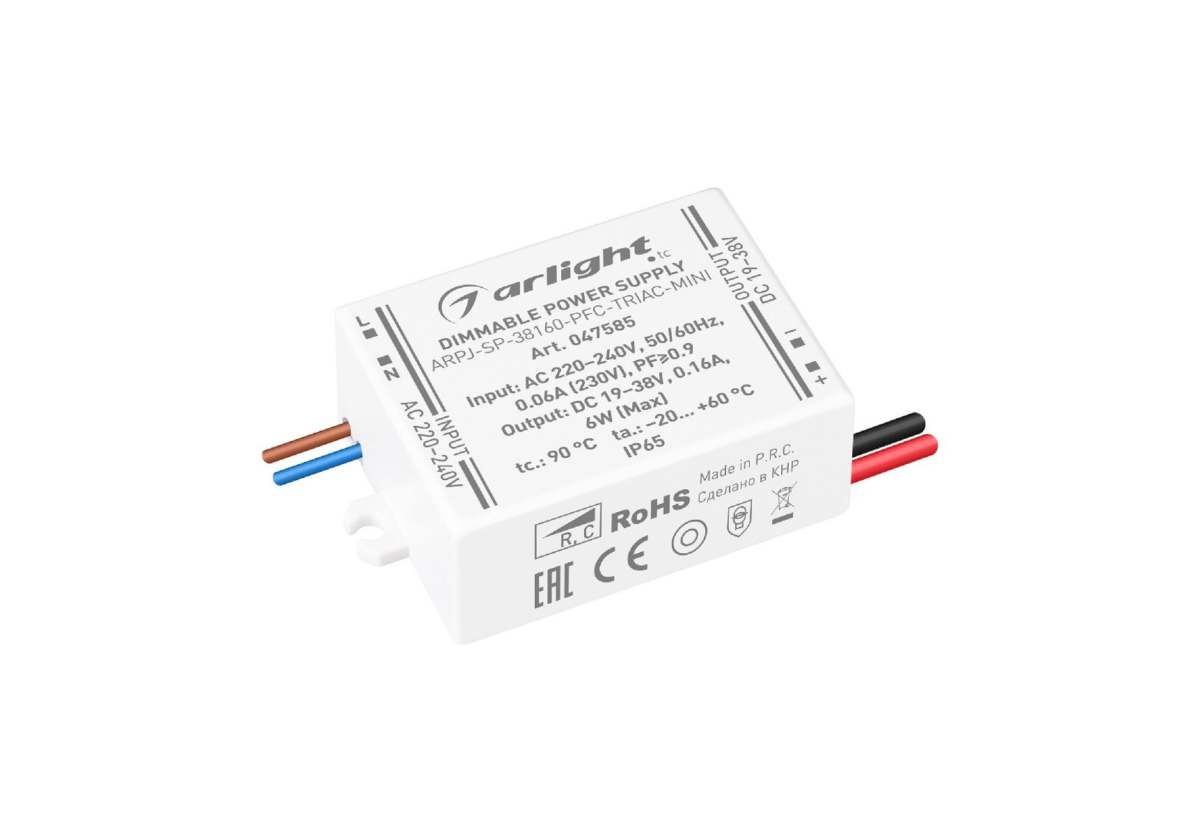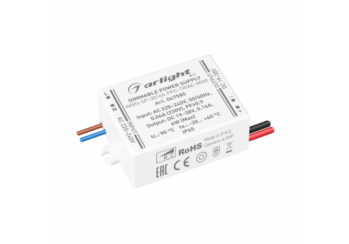 Блок питания Arlight ARPJ-SP-38160-PFC-TRIAC-MINI (6W, 19-38V, 160mA) 047585
